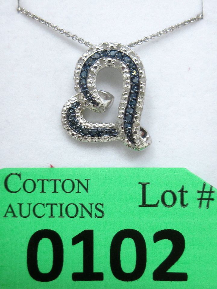 25 Blue & 25 white diamonds. Includes a chain & an $800 certificate.