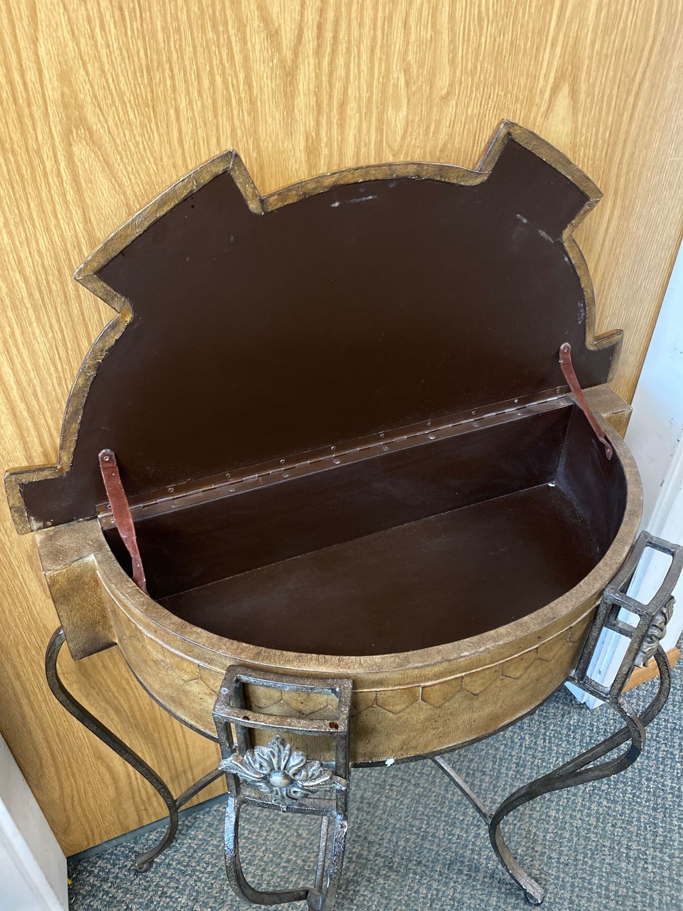 Half Moon Side Table w/ Leather Look Top & Ornate Metal Legs. Approx. 29  H x 28  x 13