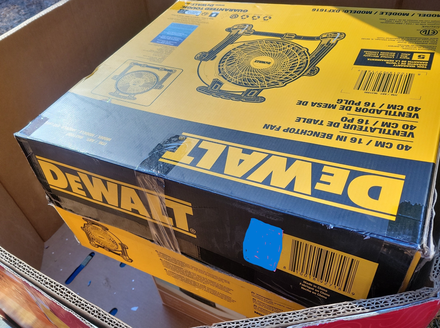 As is. Includes 16 inch DeWalt benchtop fan.