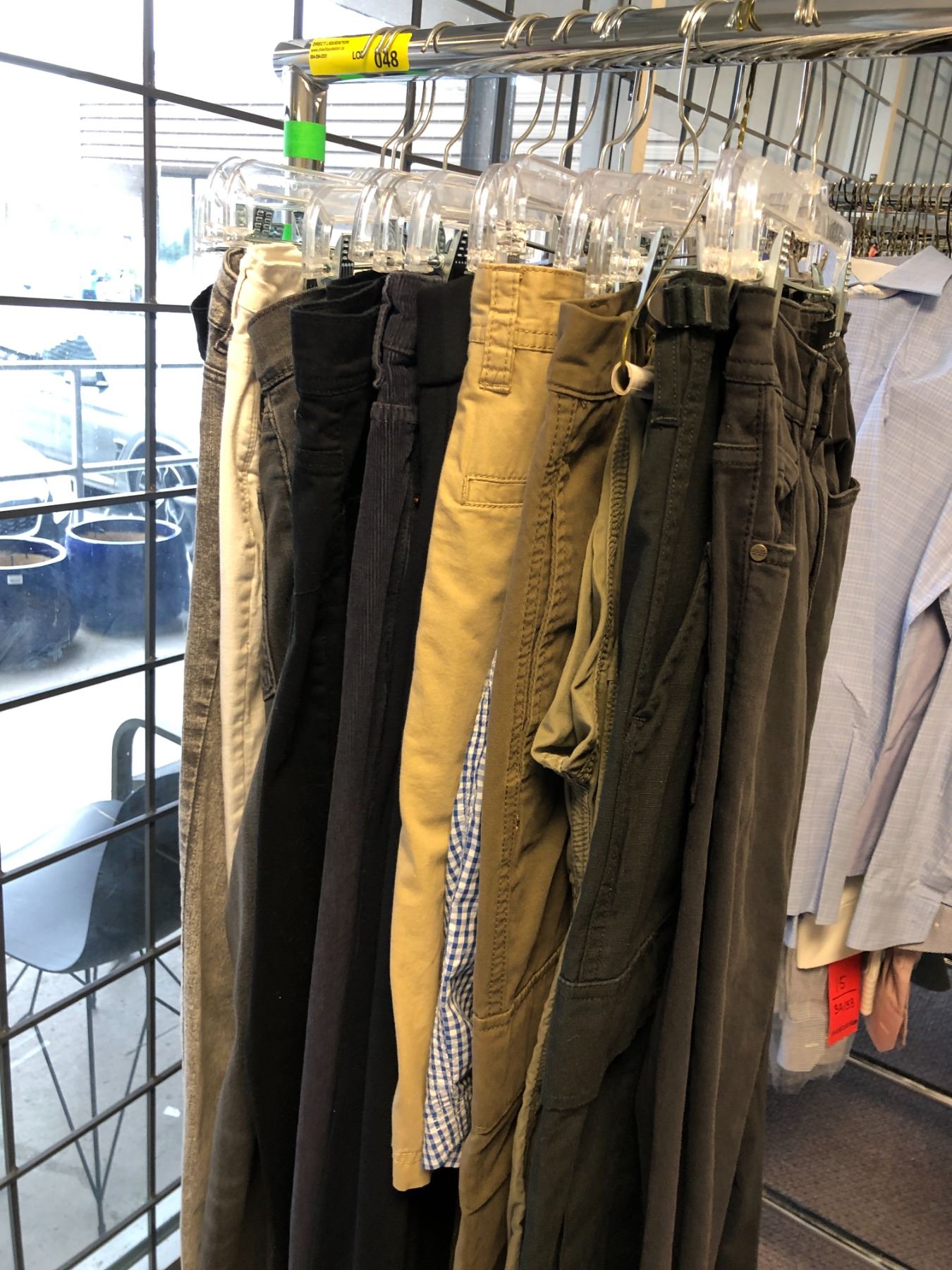 Half Rack of Mens/Womens Pants including Zara Man, Military Outdoor Clothing & More - Approx 15 Pairs CLOTHING DISCLAIMER - Items are Movie Set Clothing. There are various sizes, some new and some used and some with tags. Racks not included.