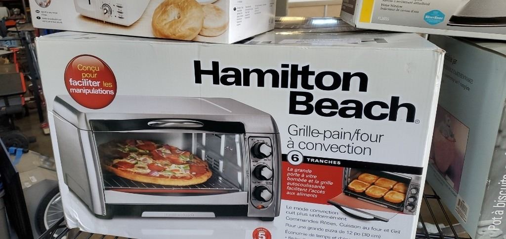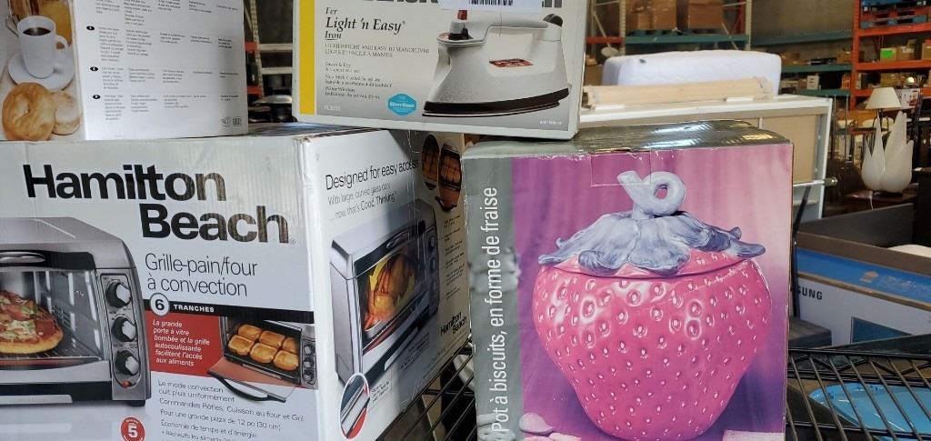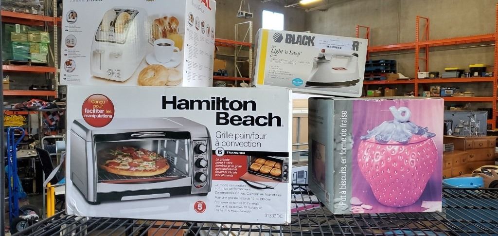 Hamilton beach convection toaster oven with toaster, cookie jar and iron said to be all new