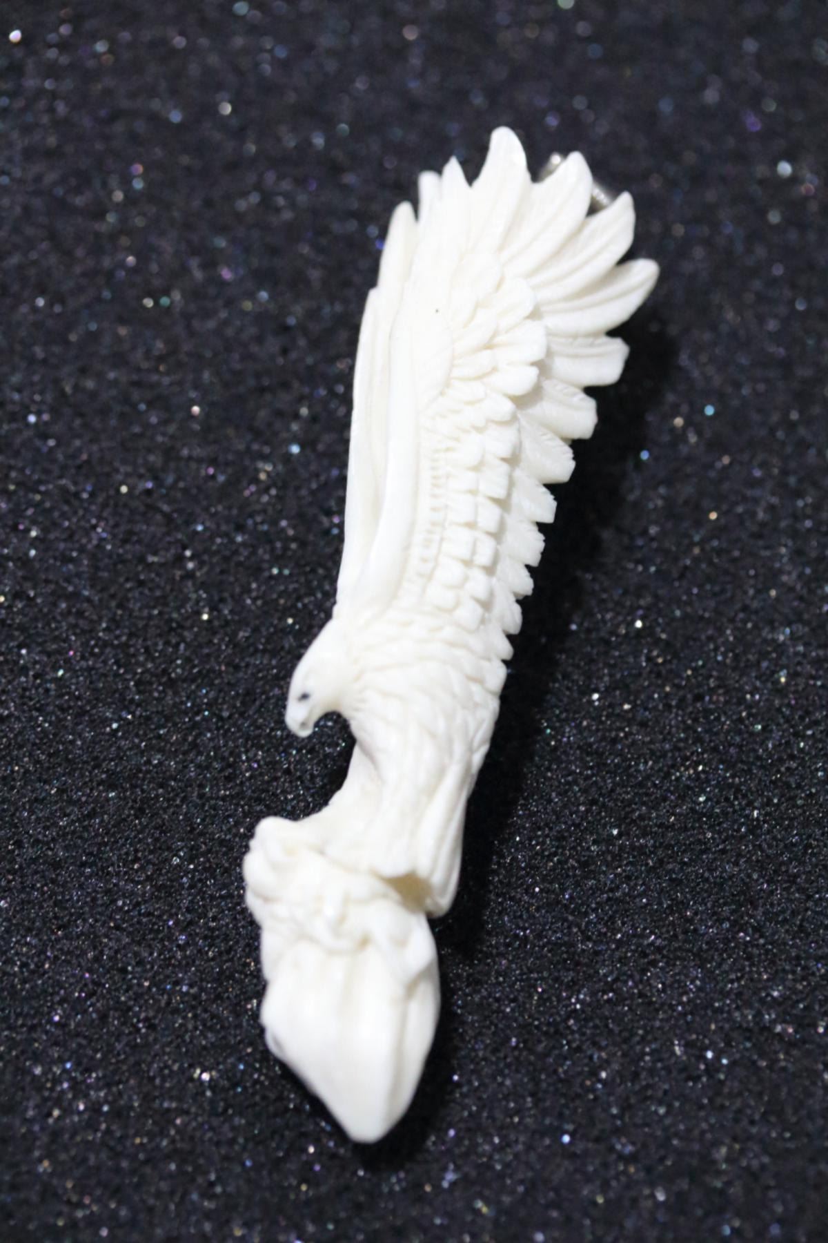 Hand Carved Antler 3D Landing Eagle Pendant......size - 3 Inches...detailed carving....material - Natural Antler