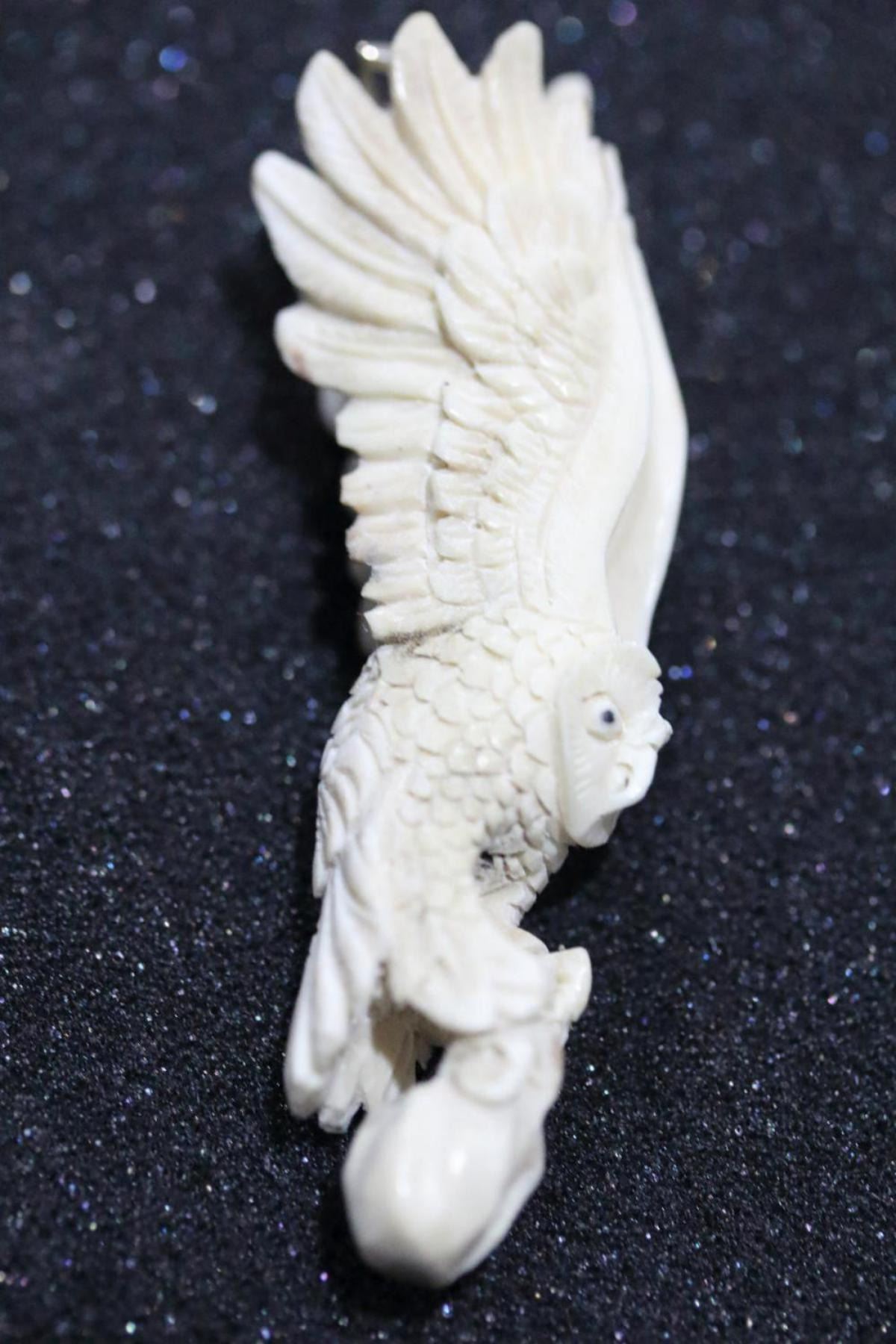 Hand Carved Antler 3D Owl Pendant....detailed carving; size 3 inches.....natural antler hand carving