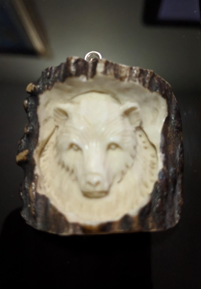 Hand Carved Antler Bear Pendat ...size 36x38 MM