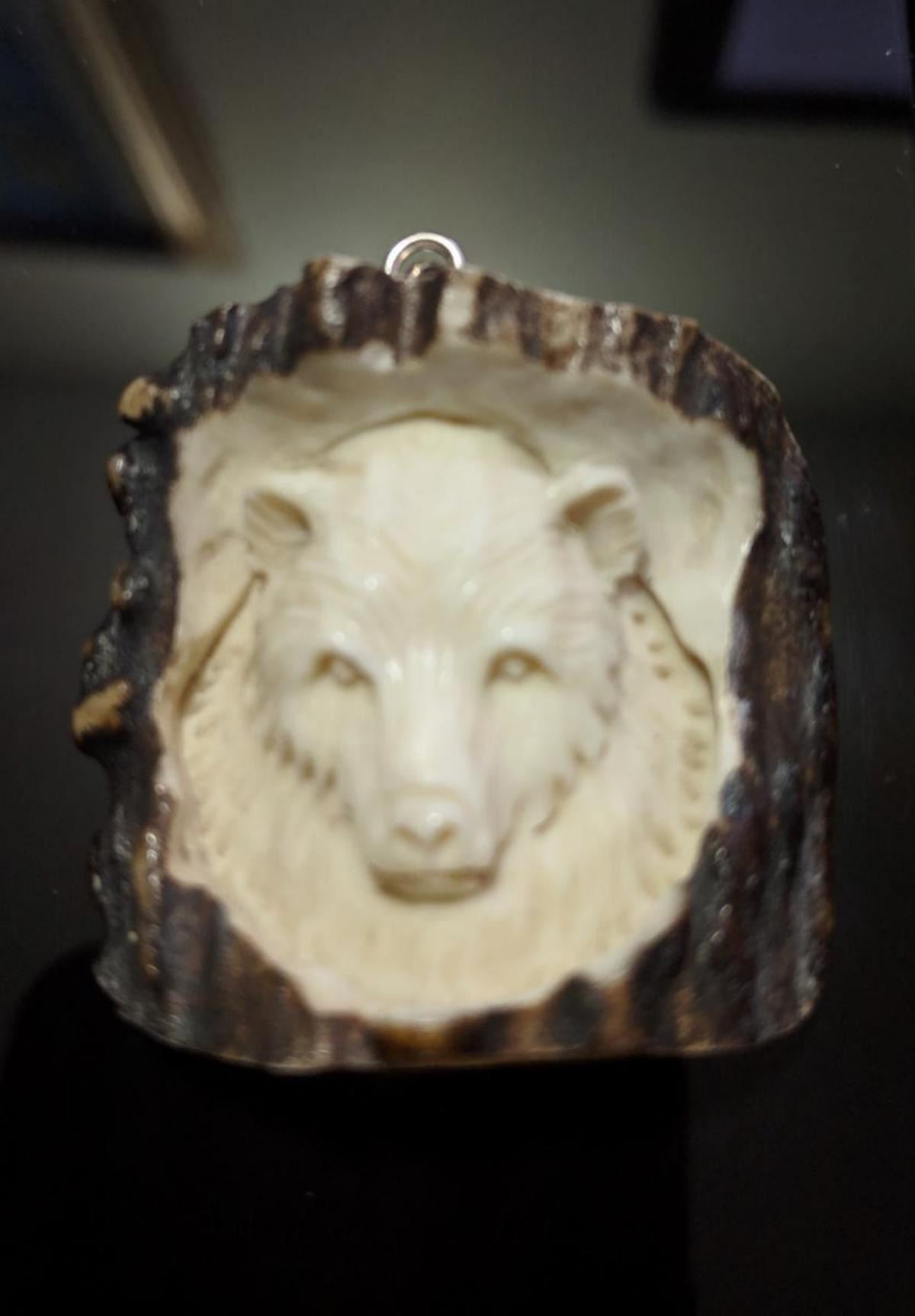 Hand Carved Antler Bear Pendat ...size 36x38 MM