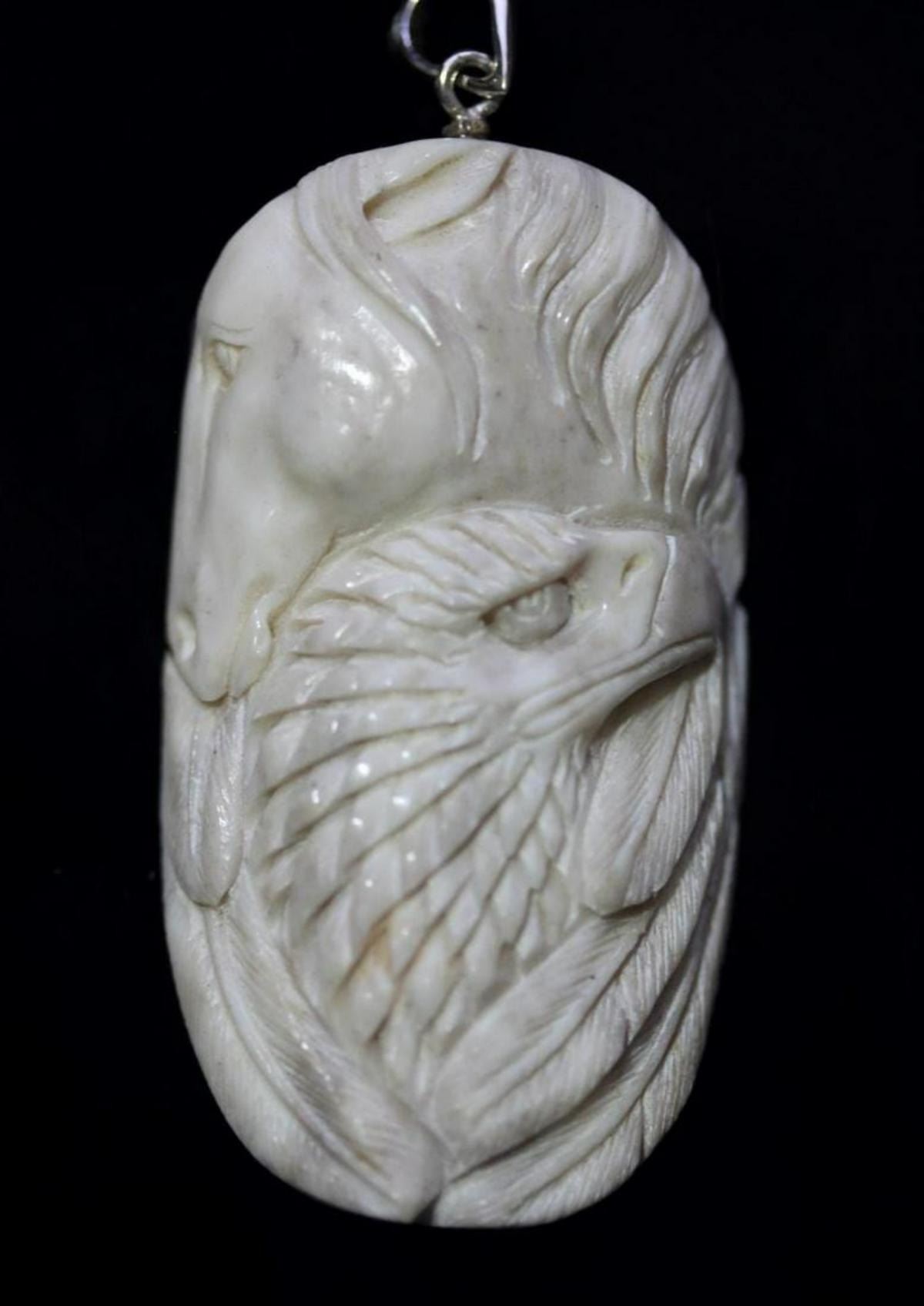 Hand Carved Antler Horse & Eagle Pendant...59 MM