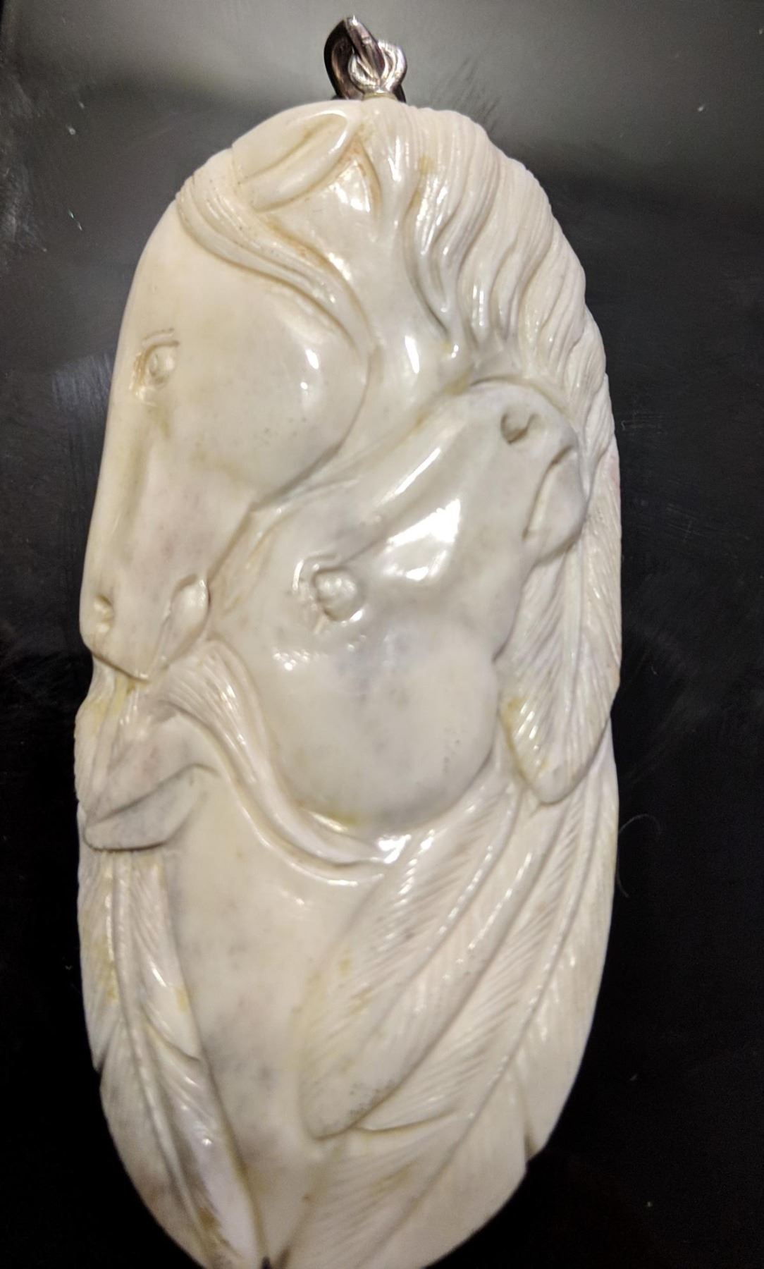 Hand Carved Antler Horse Pendant.....size 70x35 MM