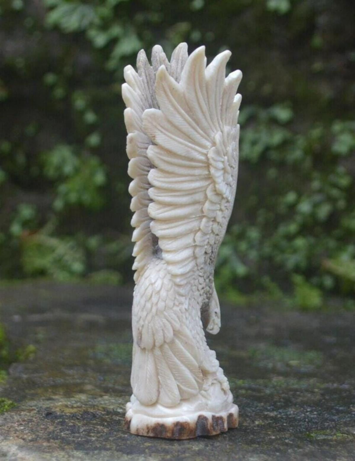 Hand Carved Antler Eagle......Height 107 MM; Stunning master piece, detailed carving......Collectors choice....for personal Eagle collection or gift for the beloved ones........