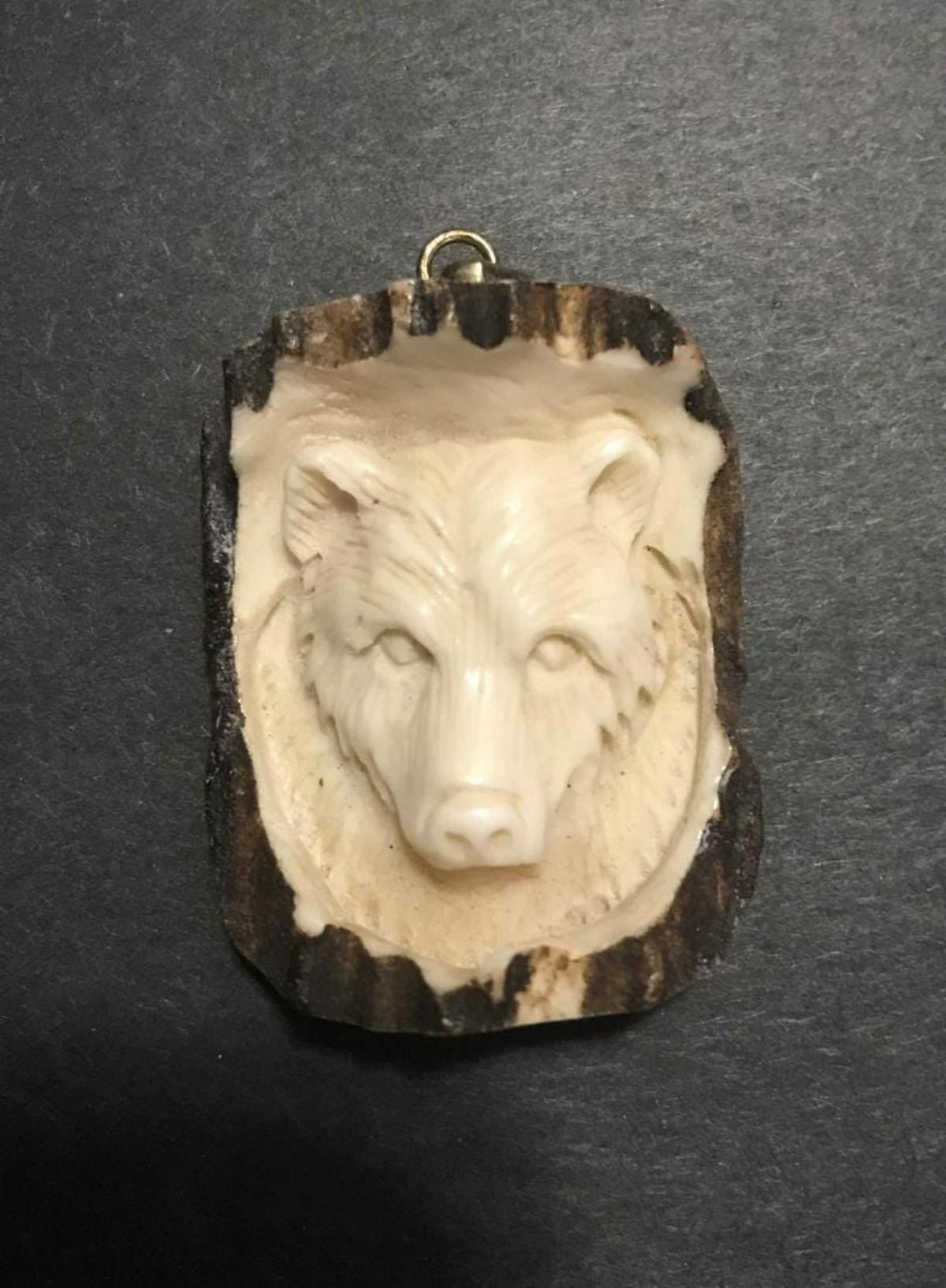 Hand Carved Antler Wolf Pendant...fine antler carving......size 40 MM
