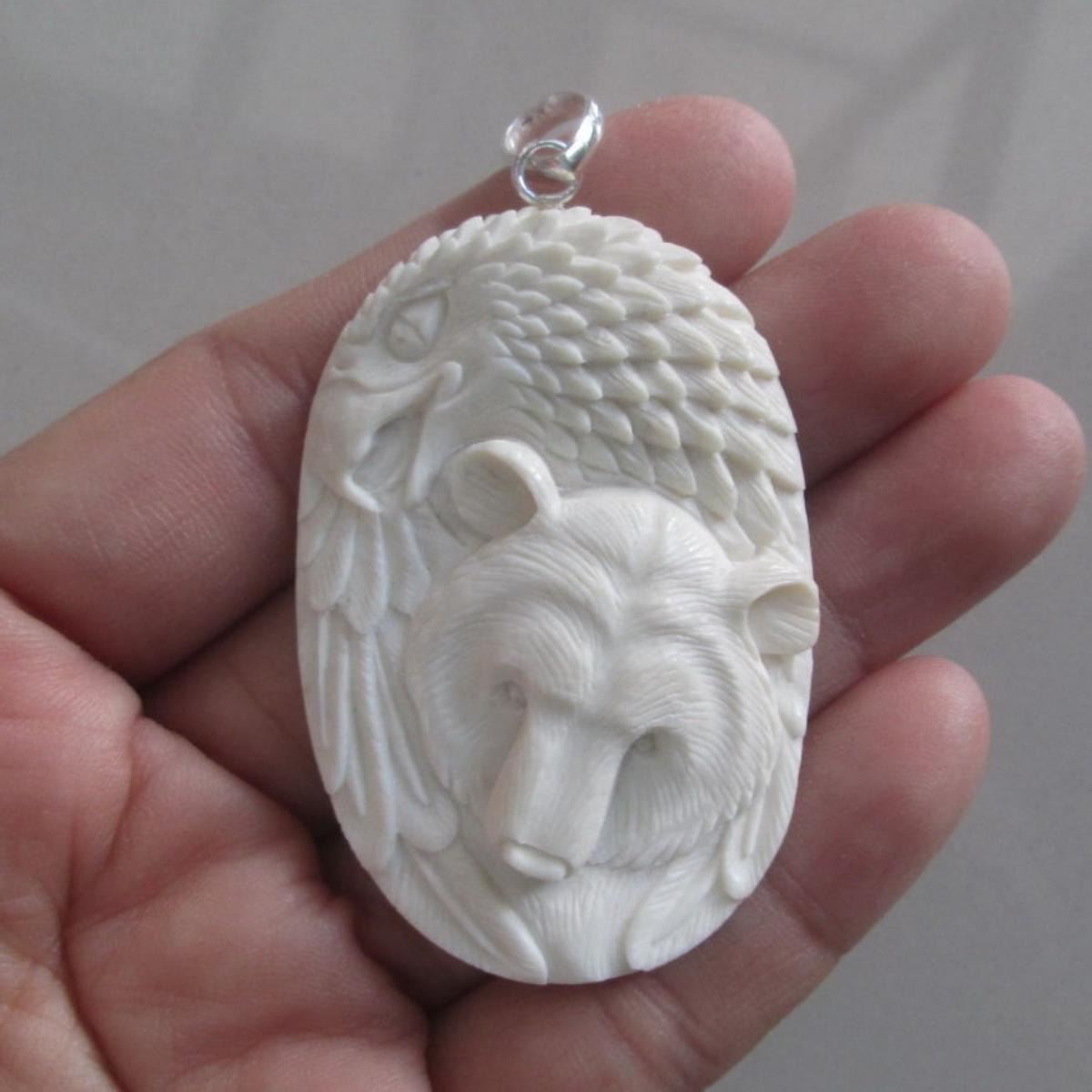 Hand Carved Bear Eagle Pendant,....Size : 53 mm x 36 mm;
