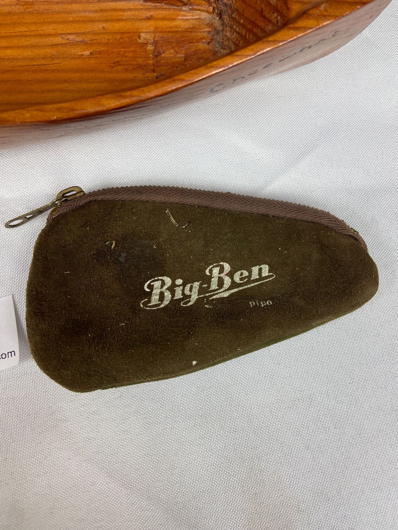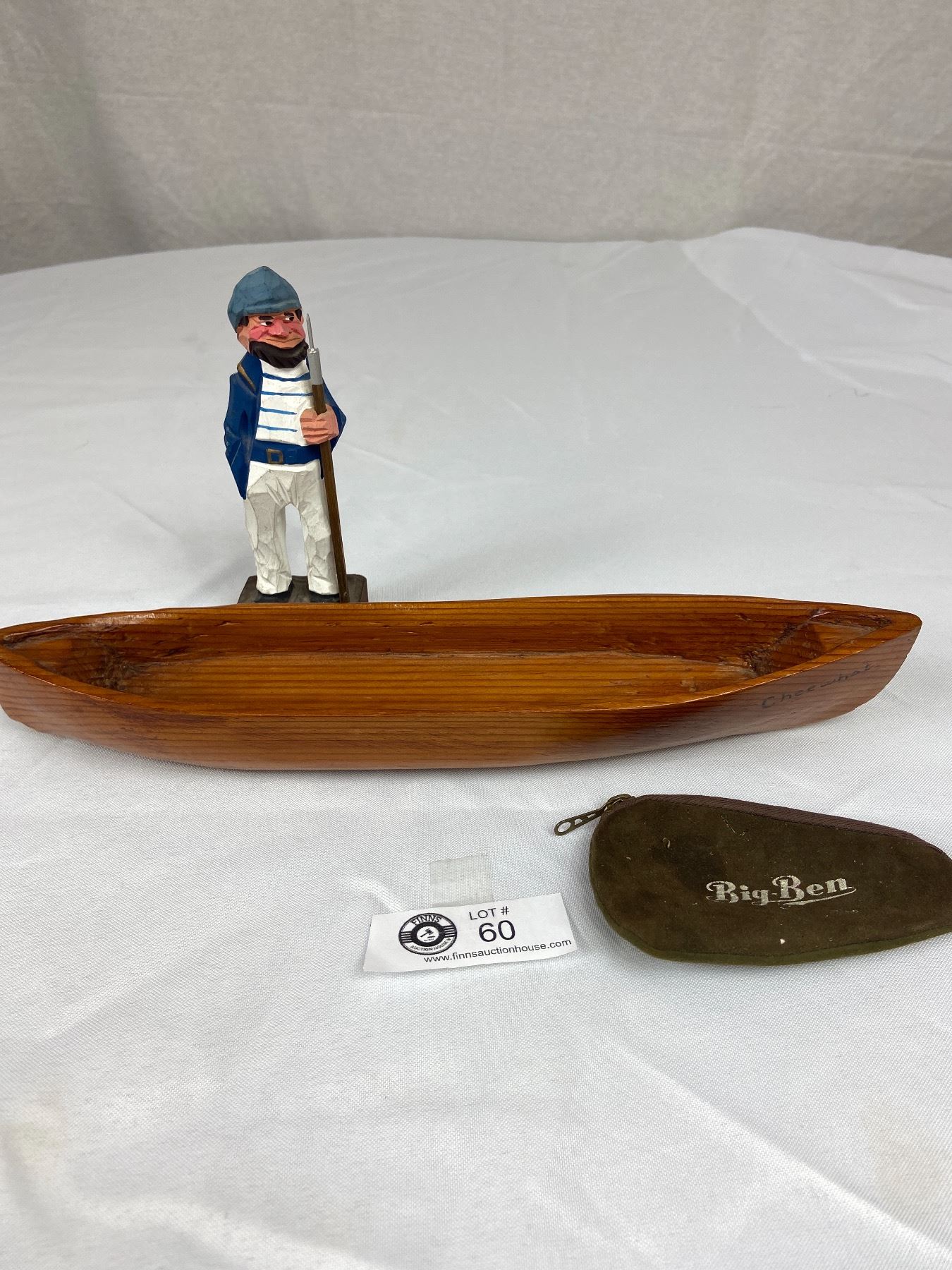 Hand Carved Boat with Figure and Big Ben Tobacco Bag