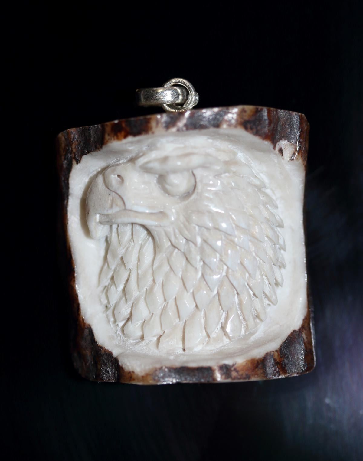 Hand Carved Eagle Pendant on antler.....size 32x28 MM...