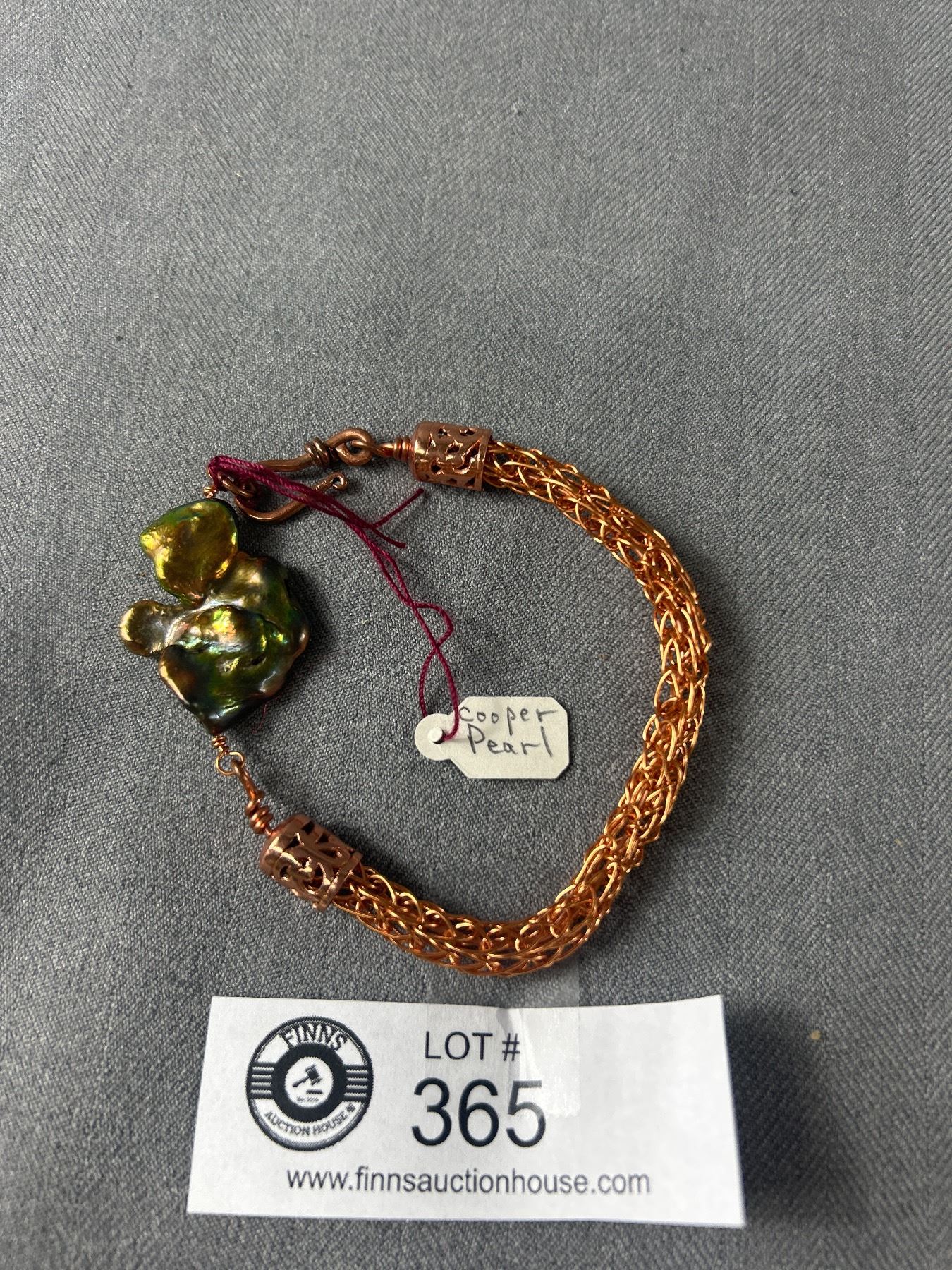 Hand Crafted Copper Bracelet w/ Copper Pearl Pendant. By JR Creations. MSRP $125.00