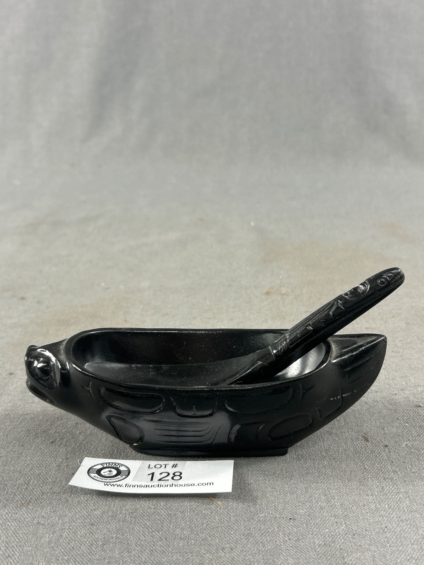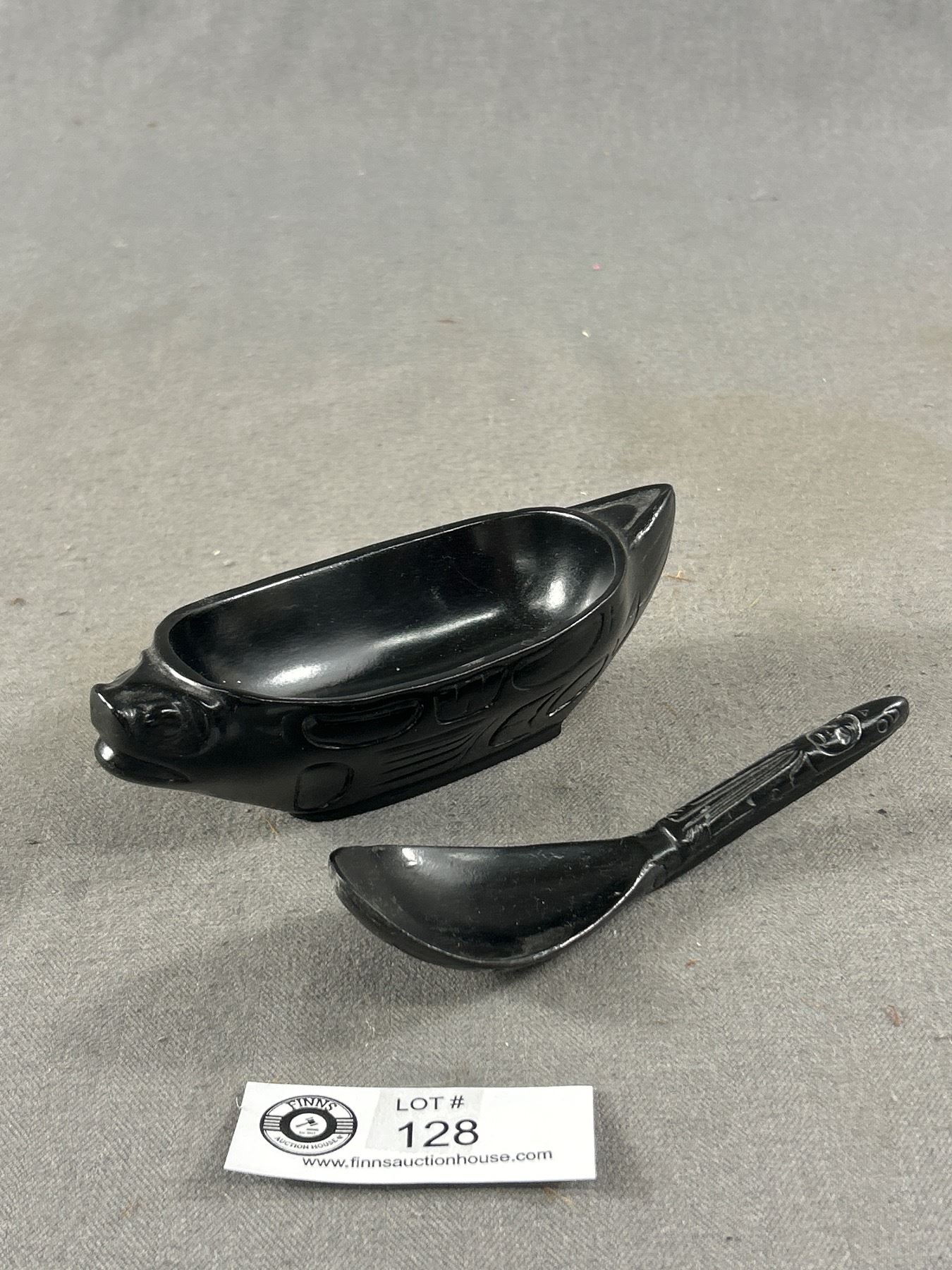 Hand Crafted In Canada Pearlite? 6" L First Nations Design Bowl w/ Spoon