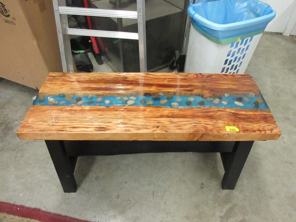 Stone and Acrylic inset strip. 16" x 42" x 19" tall.