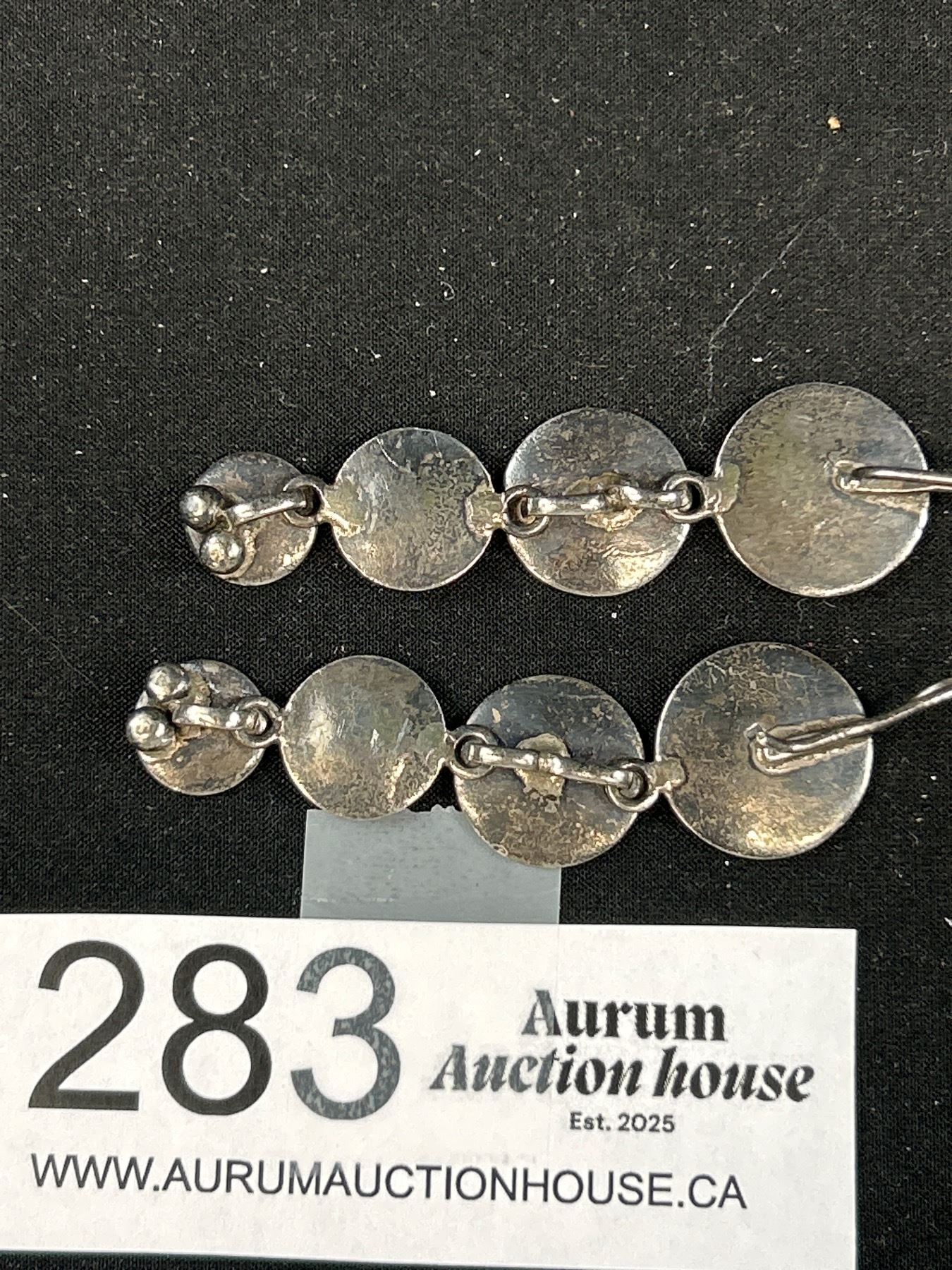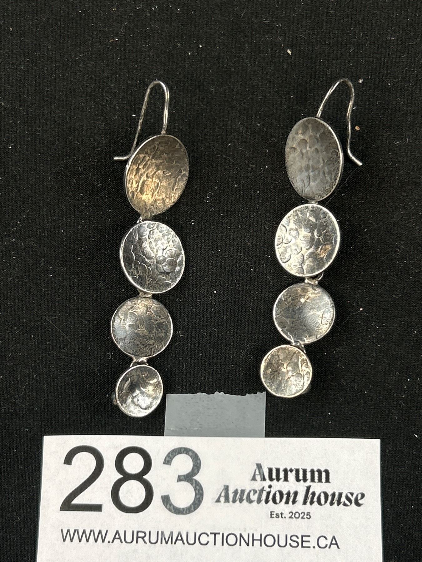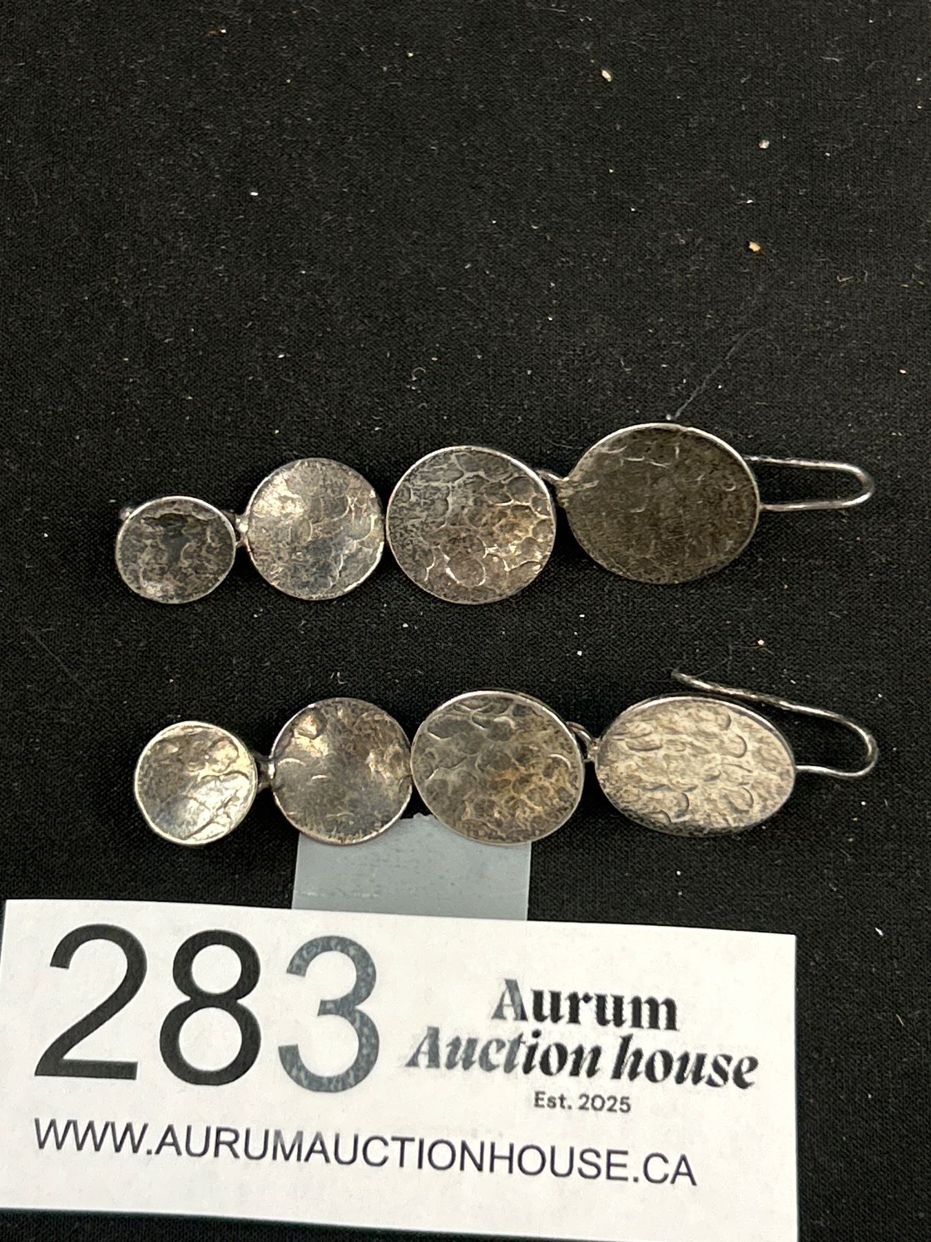 Hand Crafted Sterling Silver Pair of Earrings Vintage Original Patina