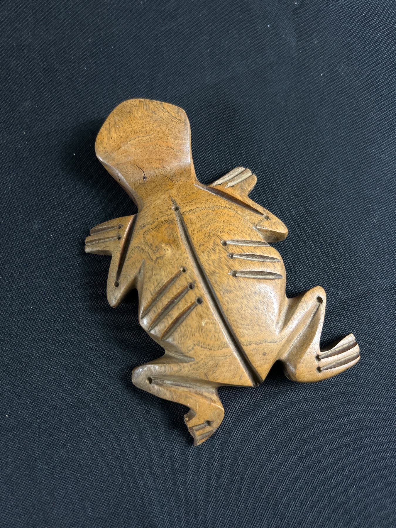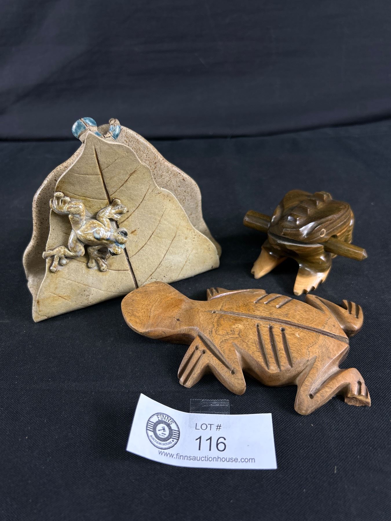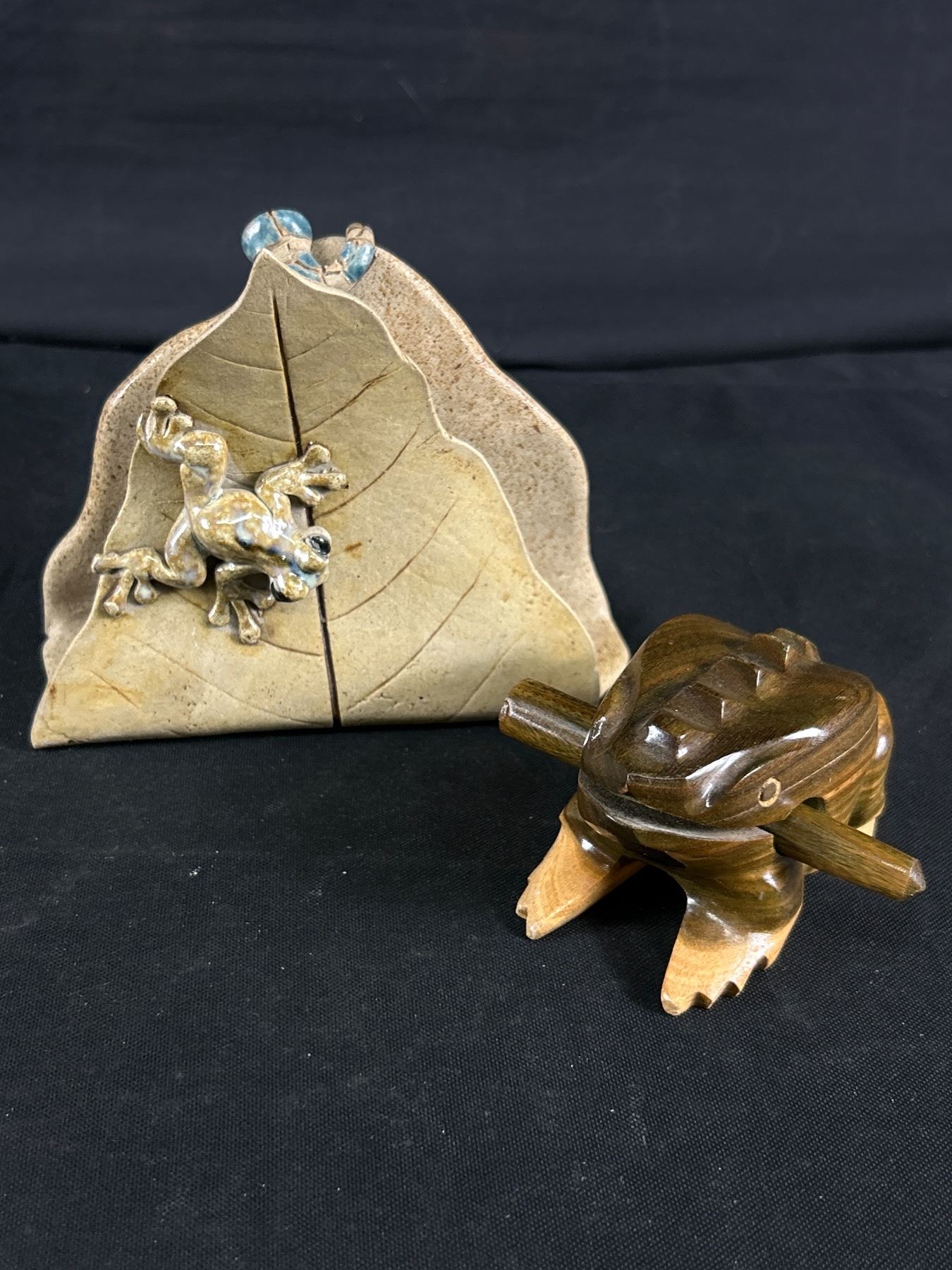 Hand Crafted Wood Frog Figures & 4.5" Ceramic Napkin Holder