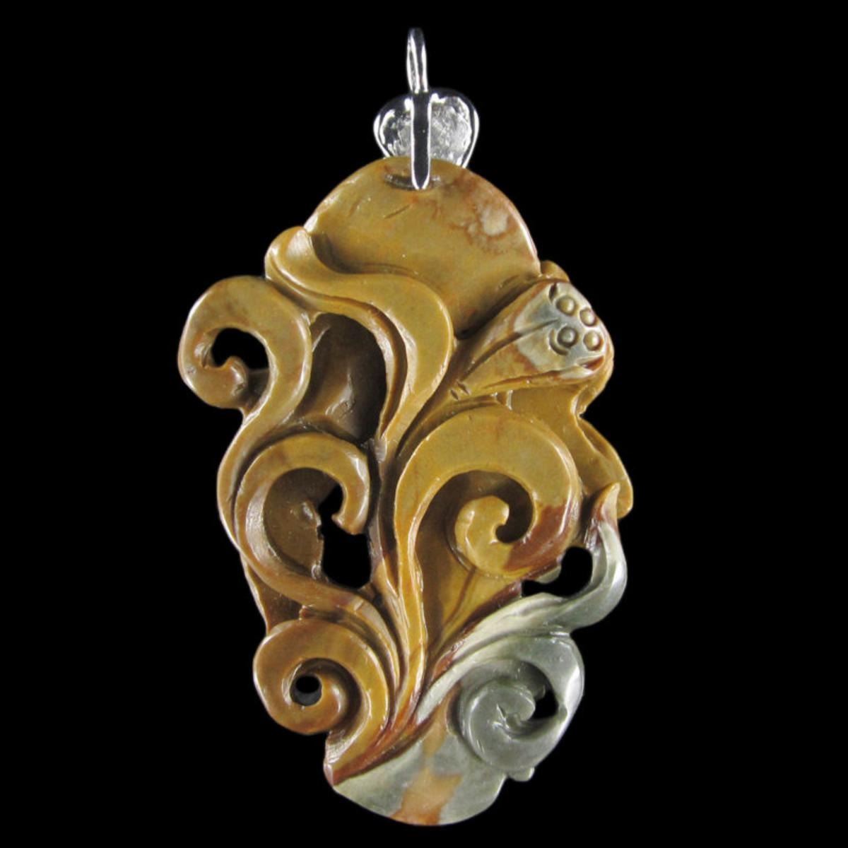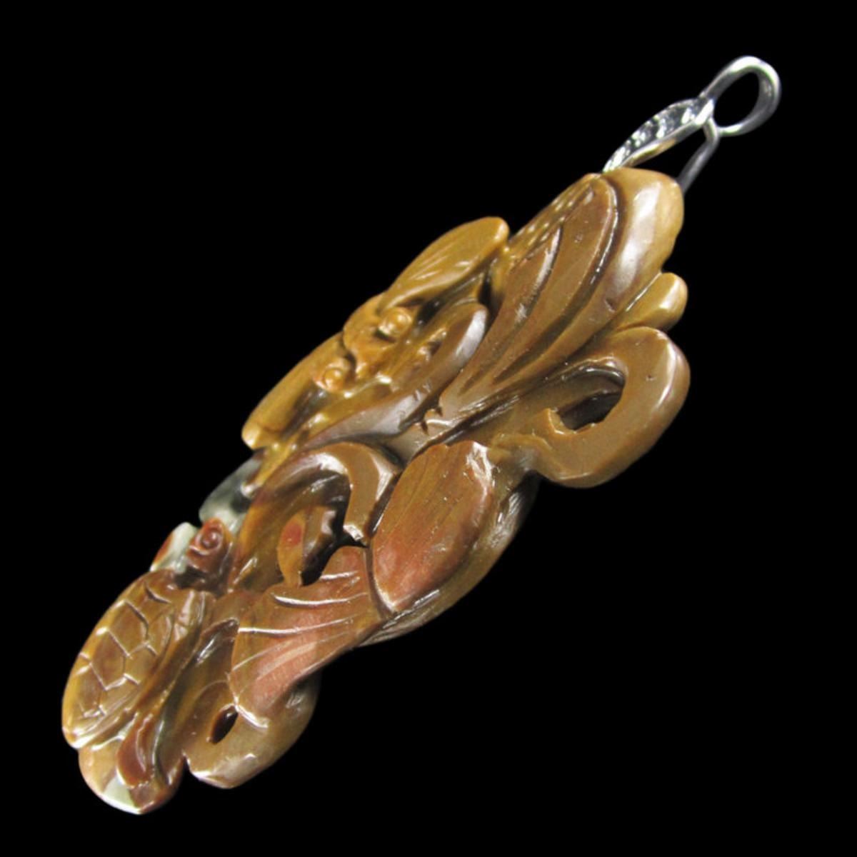 This is a hand carved Turtle Pendant *Stone Name - Succor Creek Jasper *Overall Dimension 86x45x9 mm (3.386x1.772x0.354 inch )mm *Weight 130 ct/ 26 g/ 0.917124 oz *Mohs Hardness 7 *Source Natural *Treatments None *Drilled YES diameter 2.5/36-3/36 inch **This Turtle Pendant is handcarved out of one piece of gemstone Succor Creek Jasper .The creative design of each item is based on the stone's natural color and pattern and it demands great craftmenship and patience to complete . This beauty is absolutely a unique center piece for your jewelry design. .