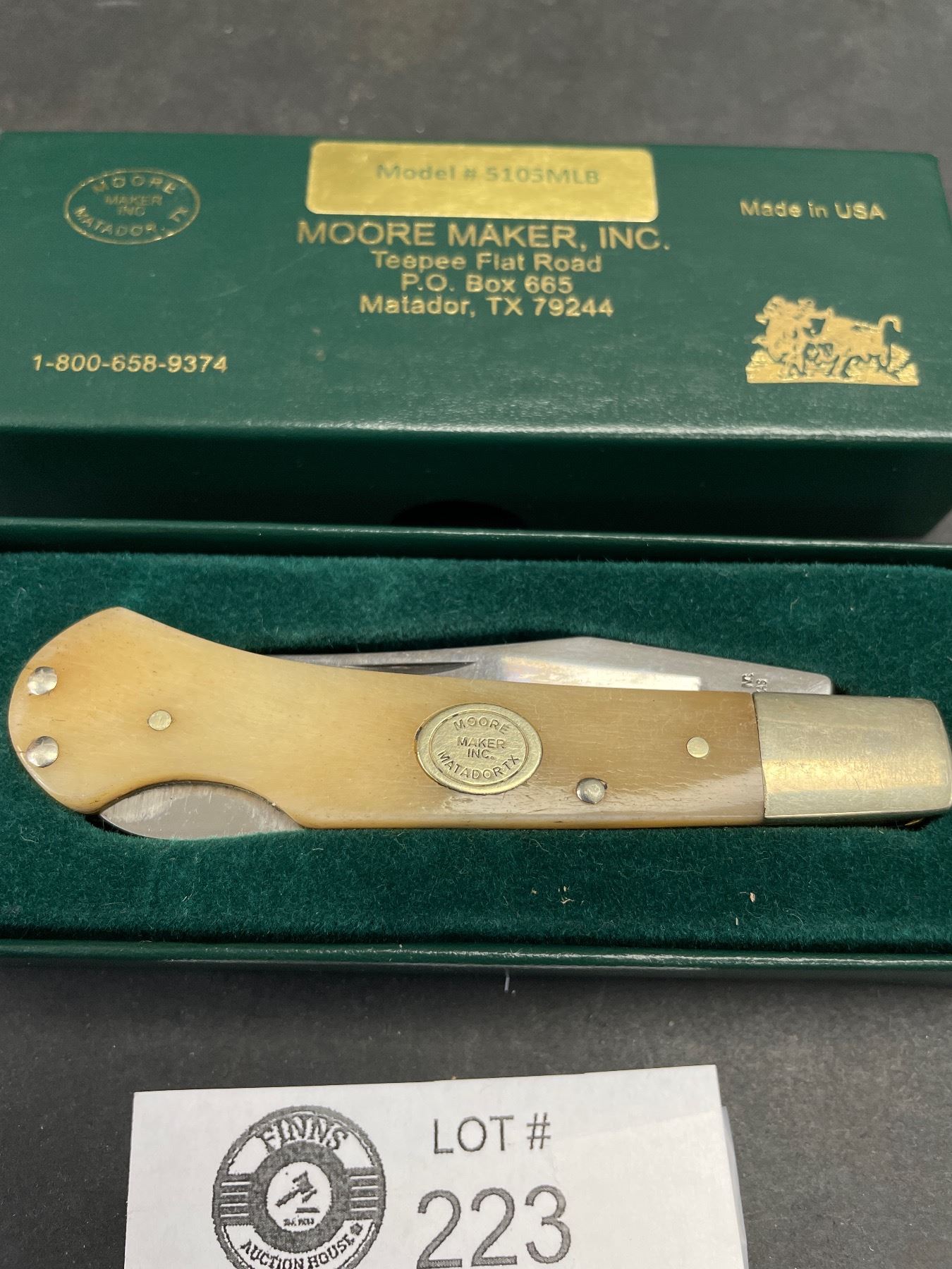 Hand Made Moore Maker Bone Handle Folding Knife - New In Box