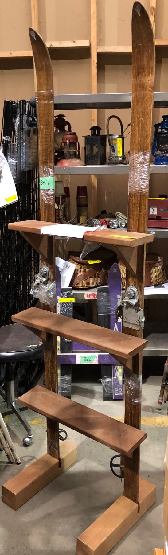 Hand-made w/ vintage wooden skis free standing shelf from the love show