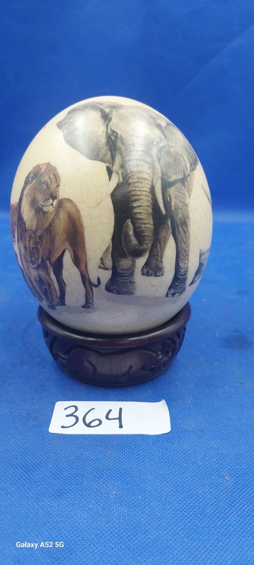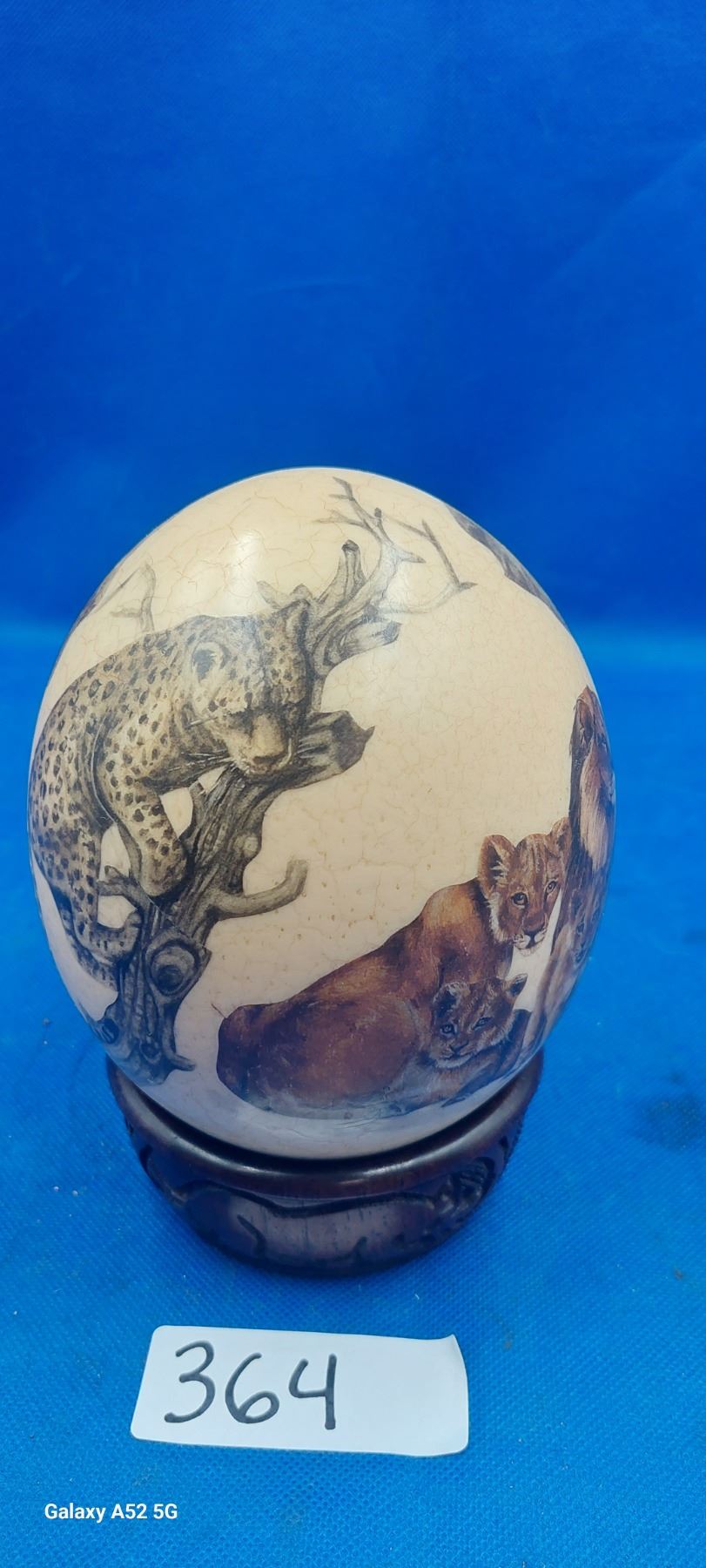 Hand painted ostrich egg on beautiful stand