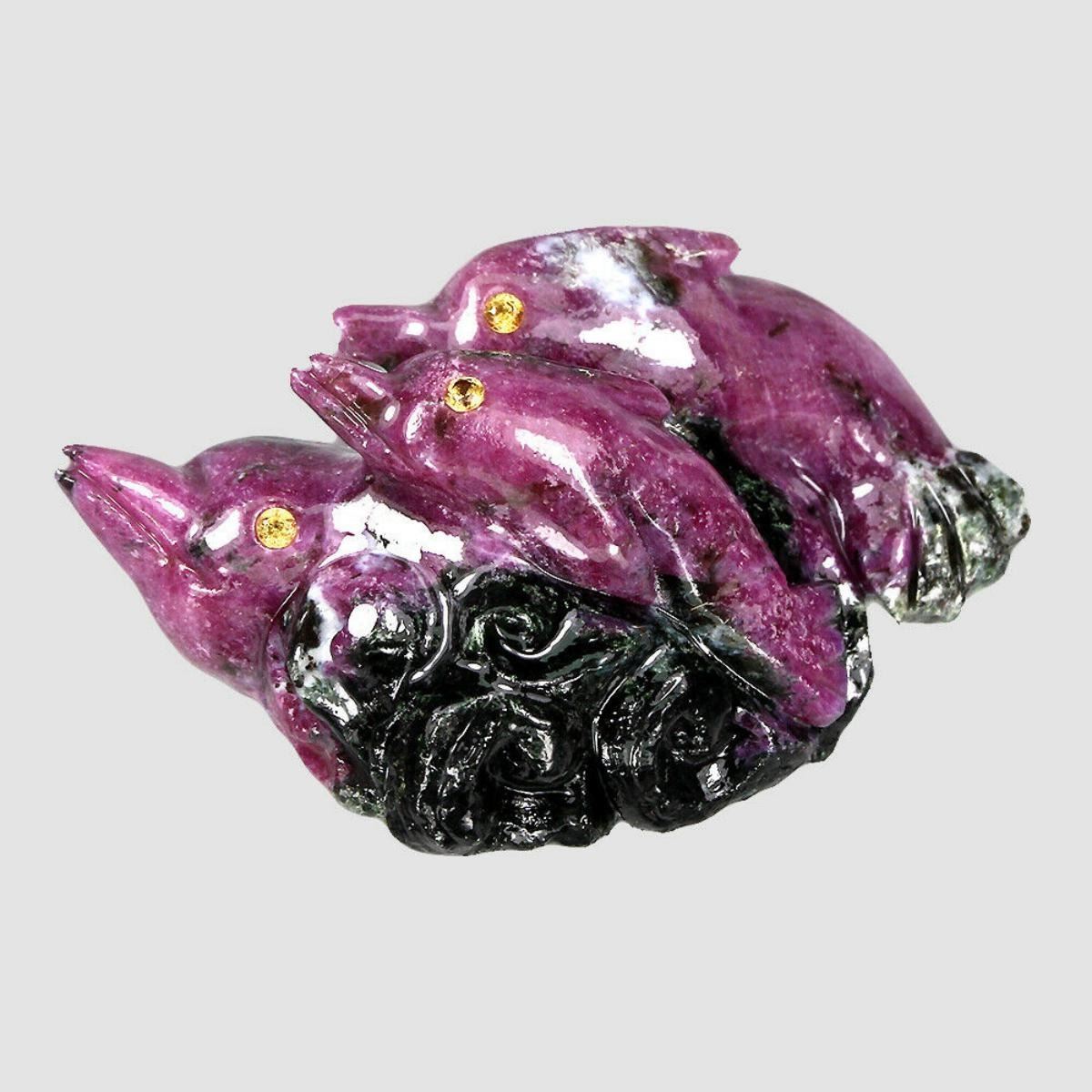 MAIN STONE-RUBY WITH ZOISITE;OTHER GEMS-SAPPHIRE;TOTAL WEIGHT-182.41 CT;DIMENSION-2.0 X 2.0 X 1.5 MM. 50.0 X 28.0 X 24.0 MM.;MAIN STONE SHAPE-CARVINGS;MAIN STONE COLOR-RED;TREATMENT-UNHEATED;ORIGIN-TANZANIA - AFRICA;HARDNESS-9.0;