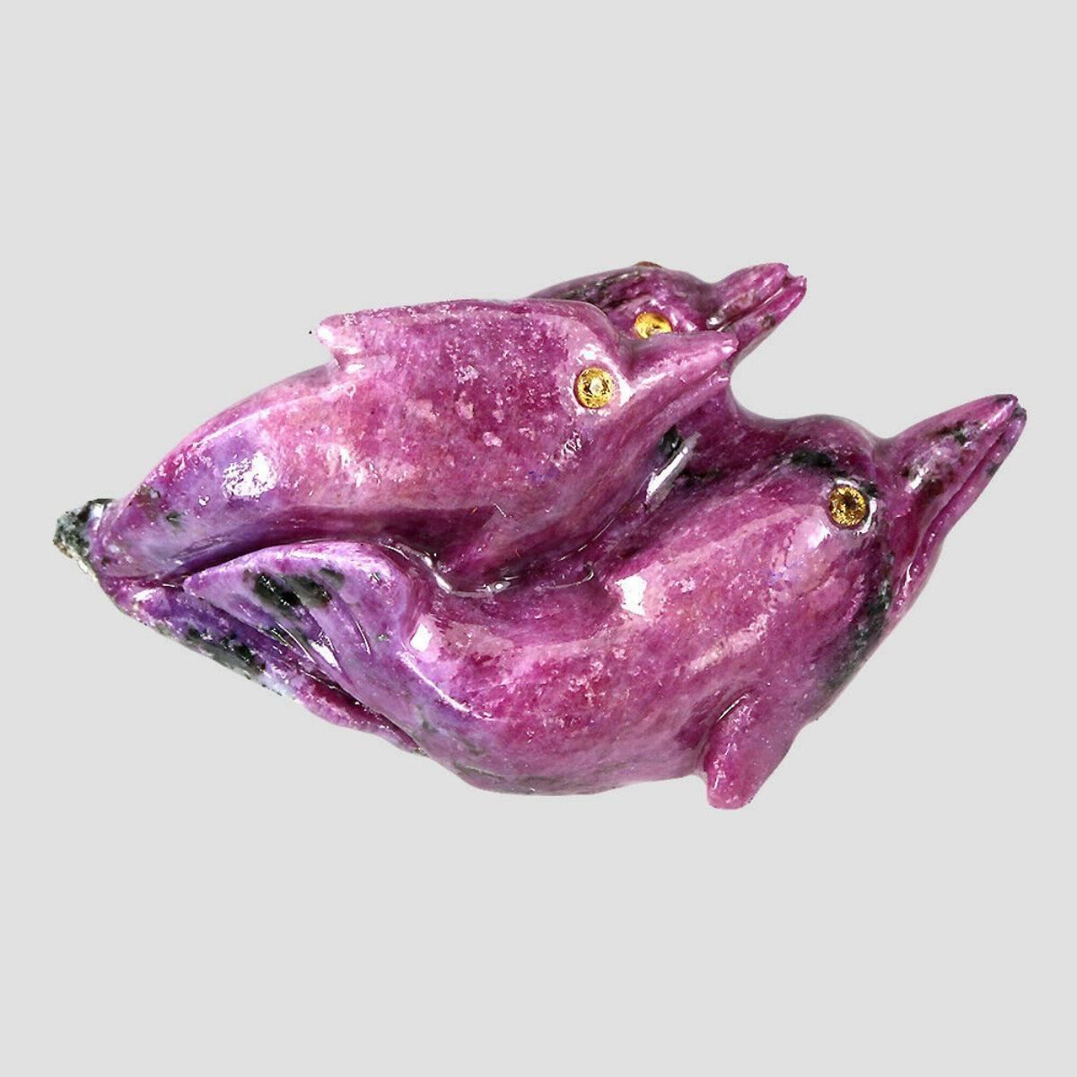 MAIN STONE-RUBY WITH ZOISITE;OTHER GEMS-SAPPHIRE;TOTAL WEIGHT-182.41 CT;DIMENSION-2.0 X 2.0 X 1.5 MM. 50.0 X 28.0 X 24.0 MM.;MAIN STONE SHAPE-CARVINGS;MAIN STONE COLOR-RED;TREATMENT-UNHEATED;ORIGIN-TANZANIA - AFRICA;HARDNESS-9.0;