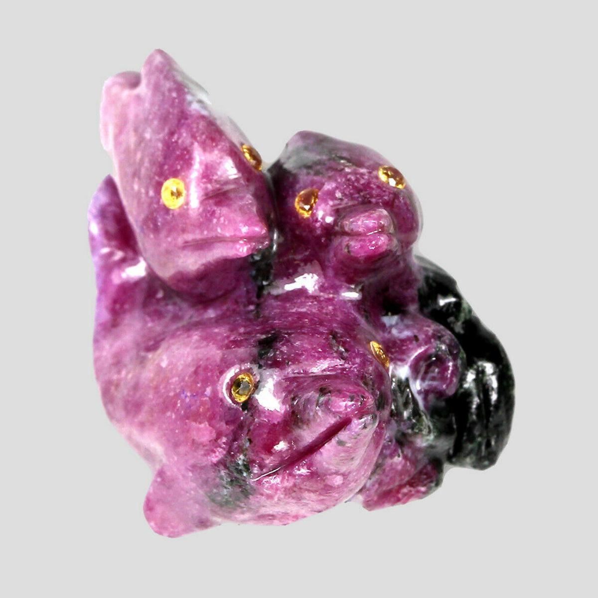 MAIN STONE-RUBY WITH ZOISITE;OTHER GEMS-SAPPHIRE;TOTAL WEIGHT-182.41 CT;DIMENSION-2.0 X 2.0 X 1.5 MM. 50.0 X 28.0 X 24.0 MM.;MAIN STONE SHAPE-CARVINGS;MAIN STONE COLOR-RED;TREATMENT-UNHEATED;ORIGIN-TANZANIA - AFRICA;HARDNESS-9.0;