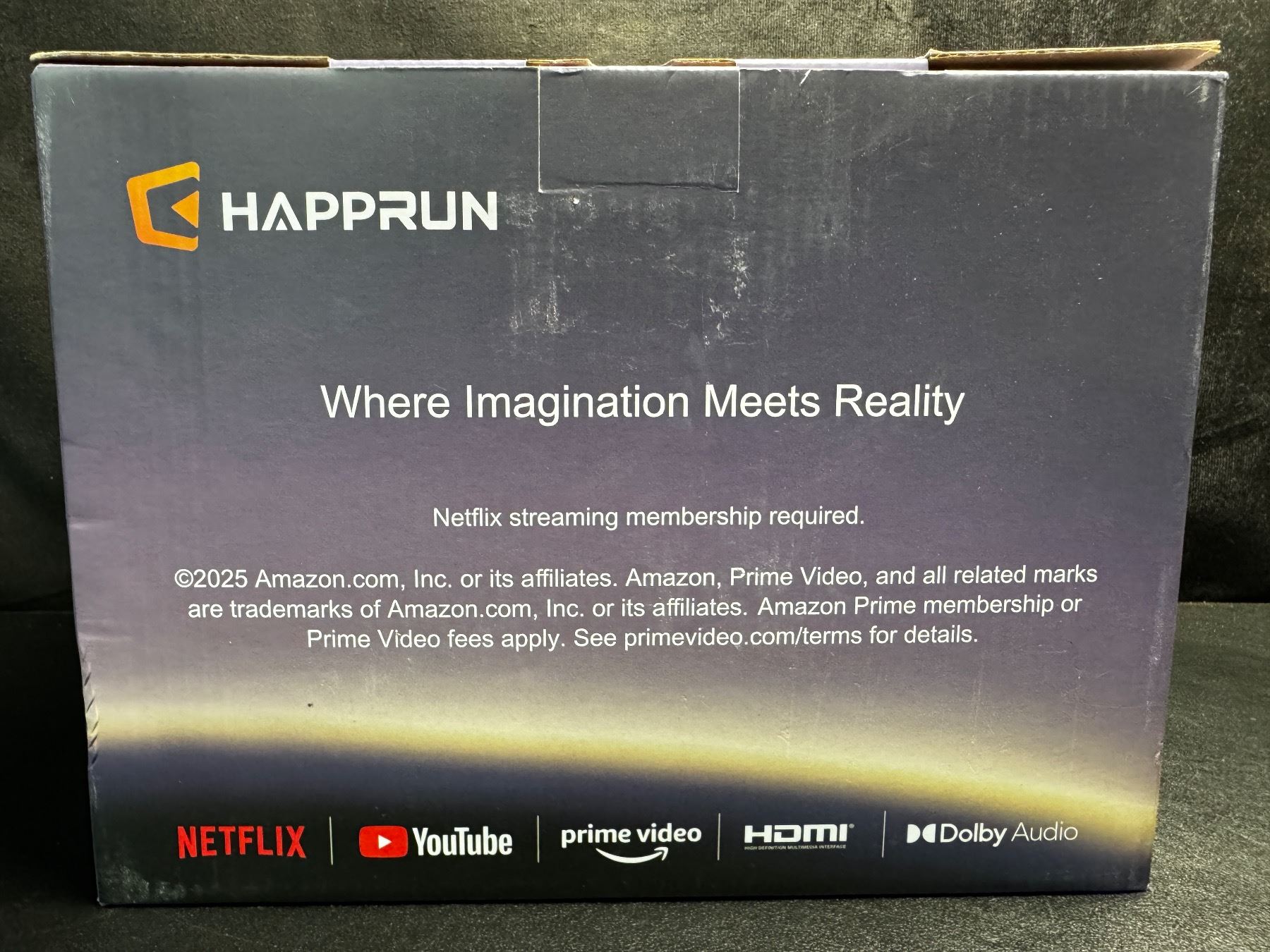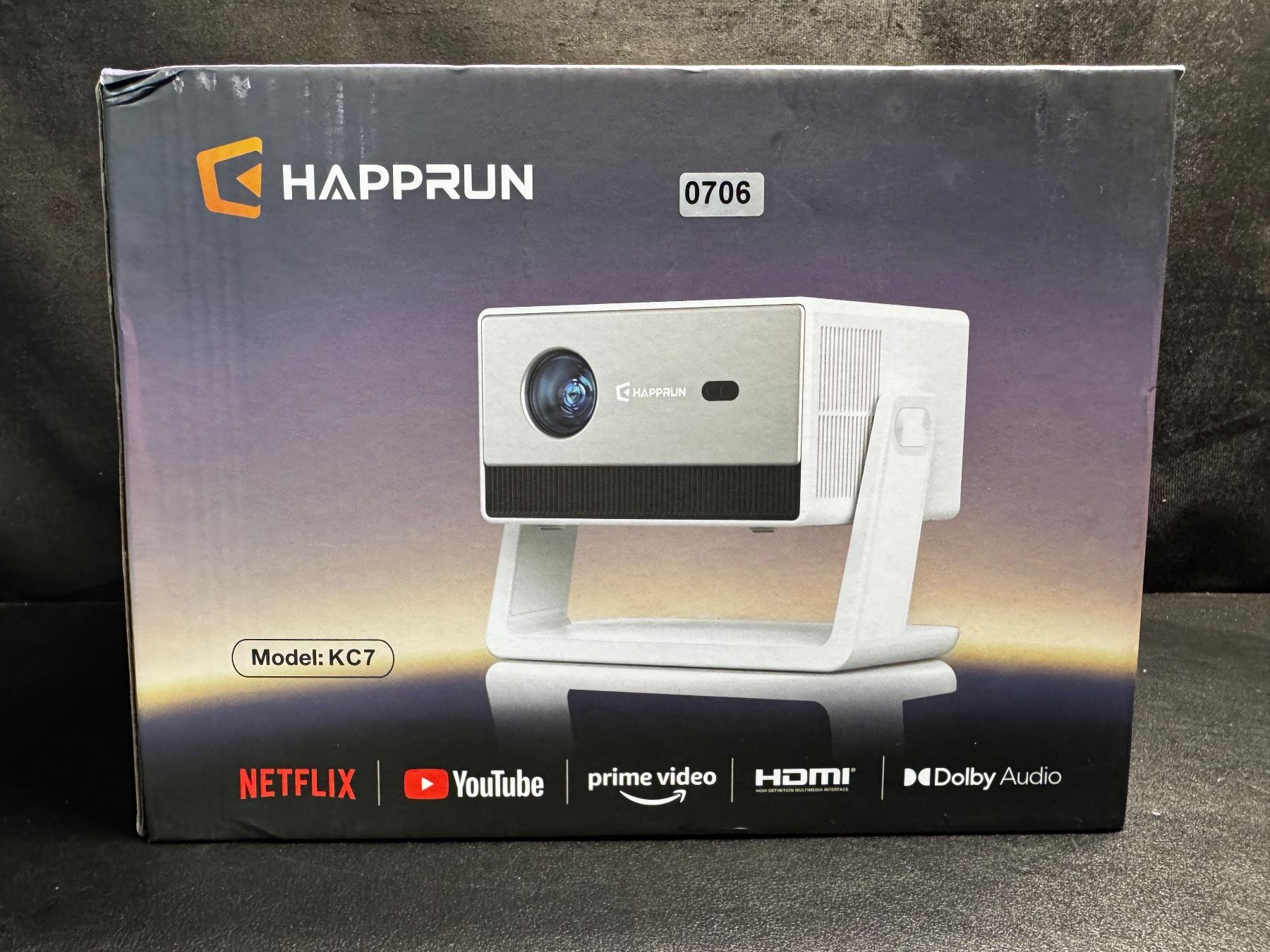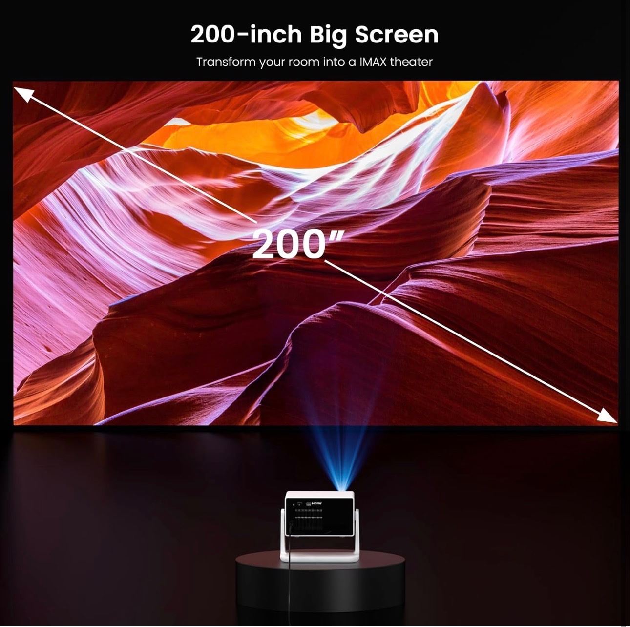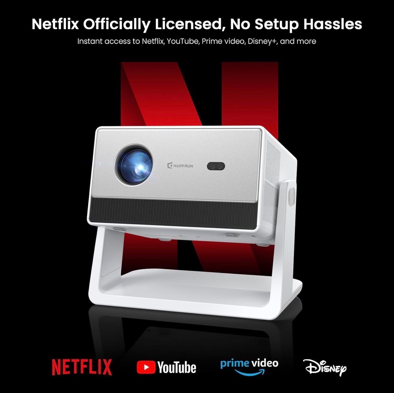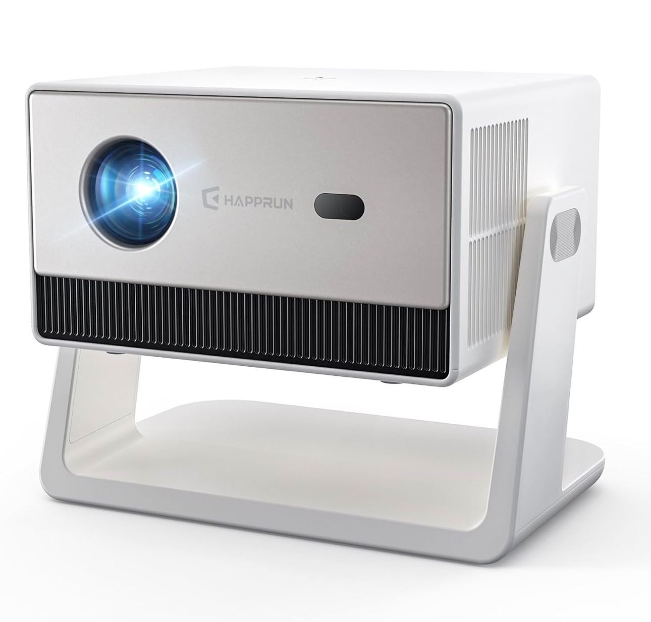 - 1500ANSI Full HD Smart Projector with Stand, HAPPRUN 4K Projector with WiFi and Bluetooth, Built in Apps, Dolby Audio, Movie Projector for Oudoor, Indoor, Gaming, Bedroom, White