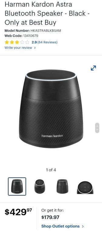 Harman Kardon Astra Bluetooth Speaker - Black - Retail $429.97