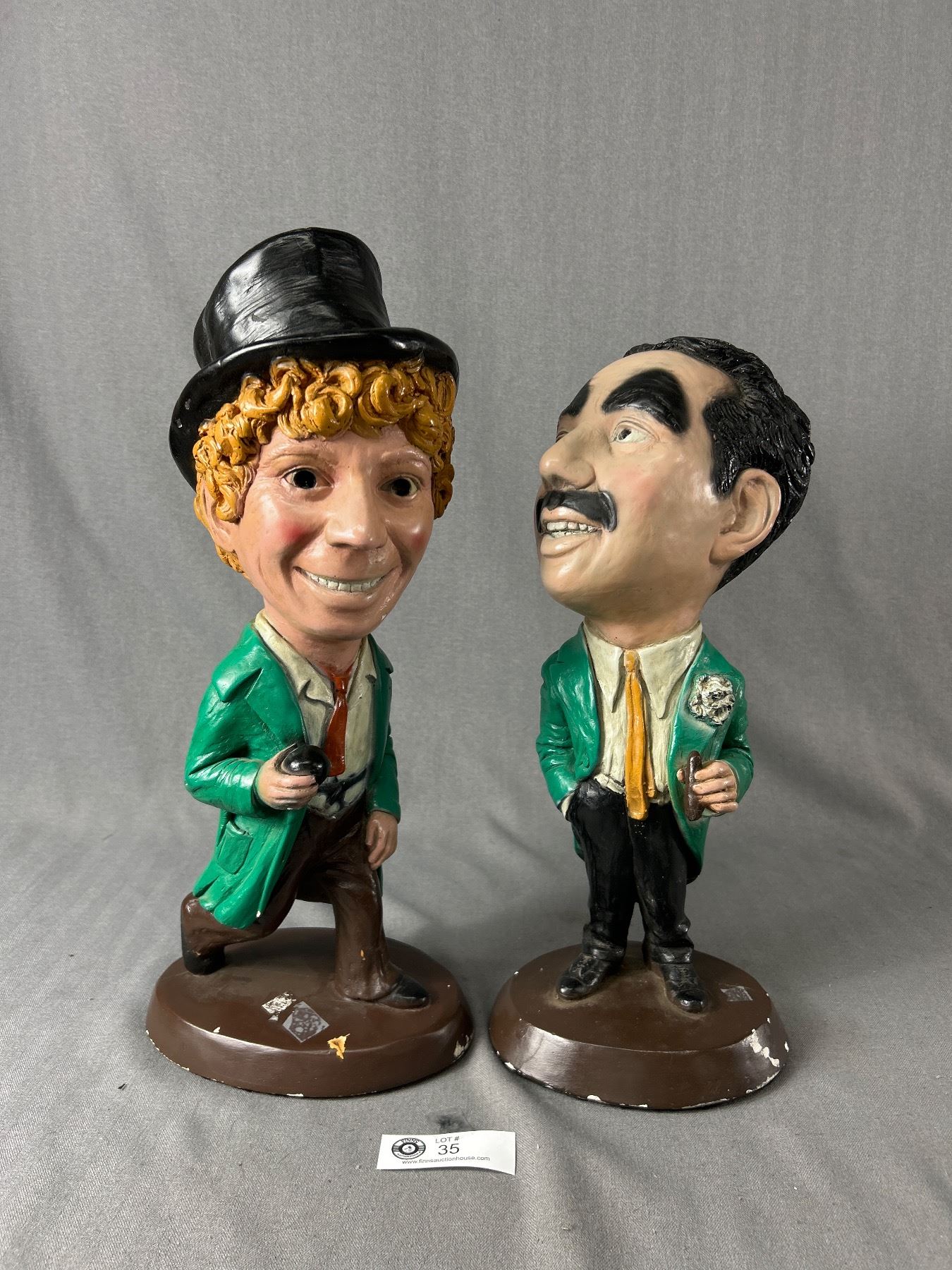 Harpo Marx and Groucho Marx Very Heavy Chalkware Statues 17  Tall