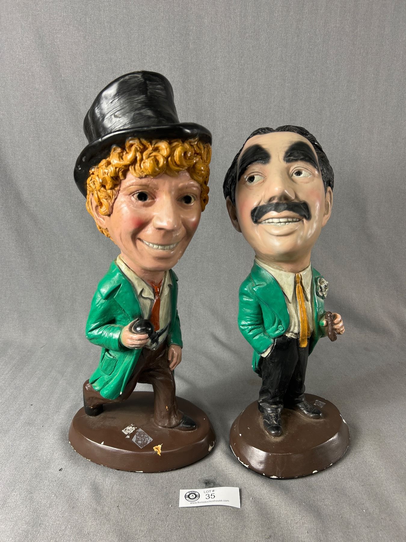 Harpo Marx and Groucho Marx Very Heavy Chalkware Statues 17" Tall