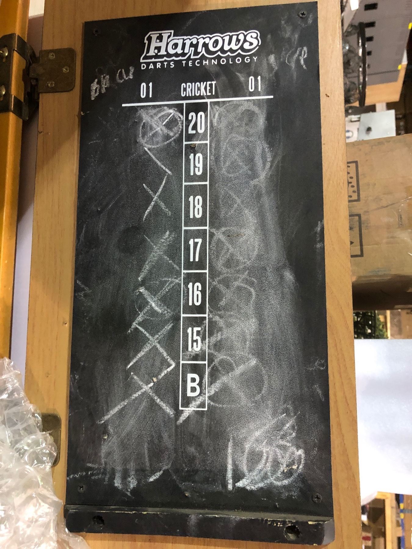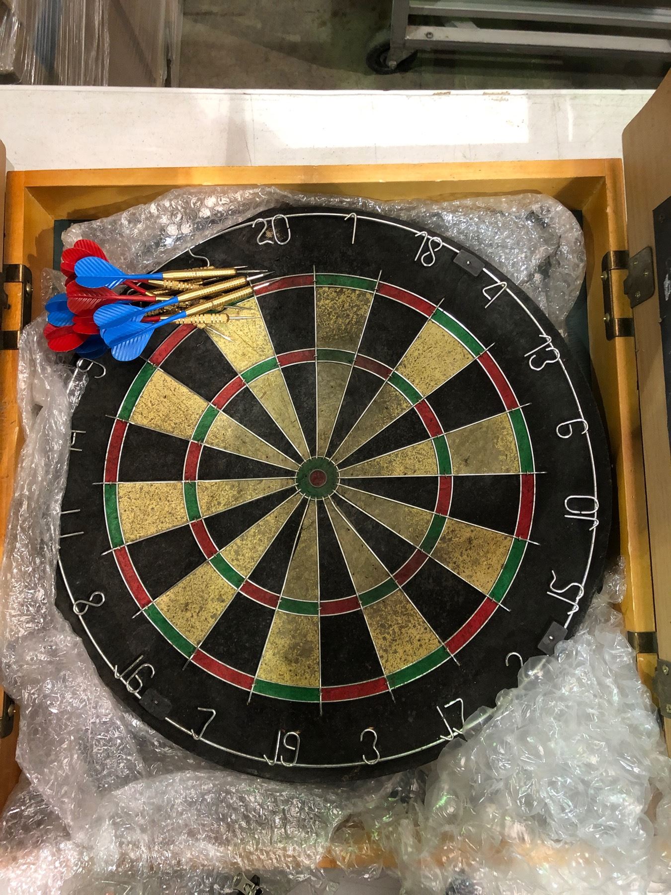 Harrows dart board w/ darts & wooden case