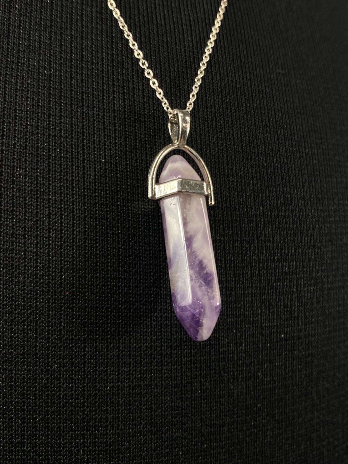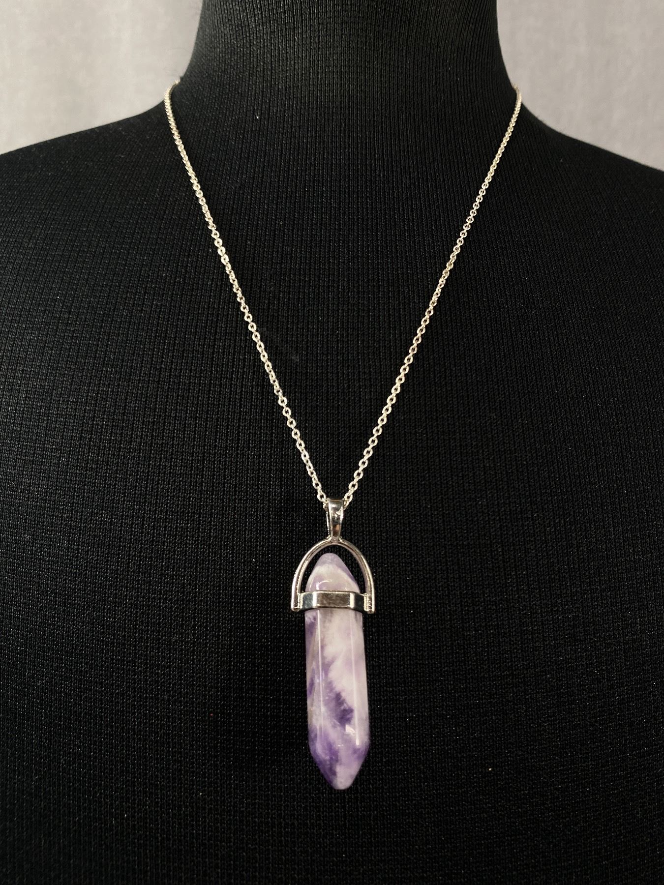 Healing Point Gemstone on a Silvertone Necklace Amethyst