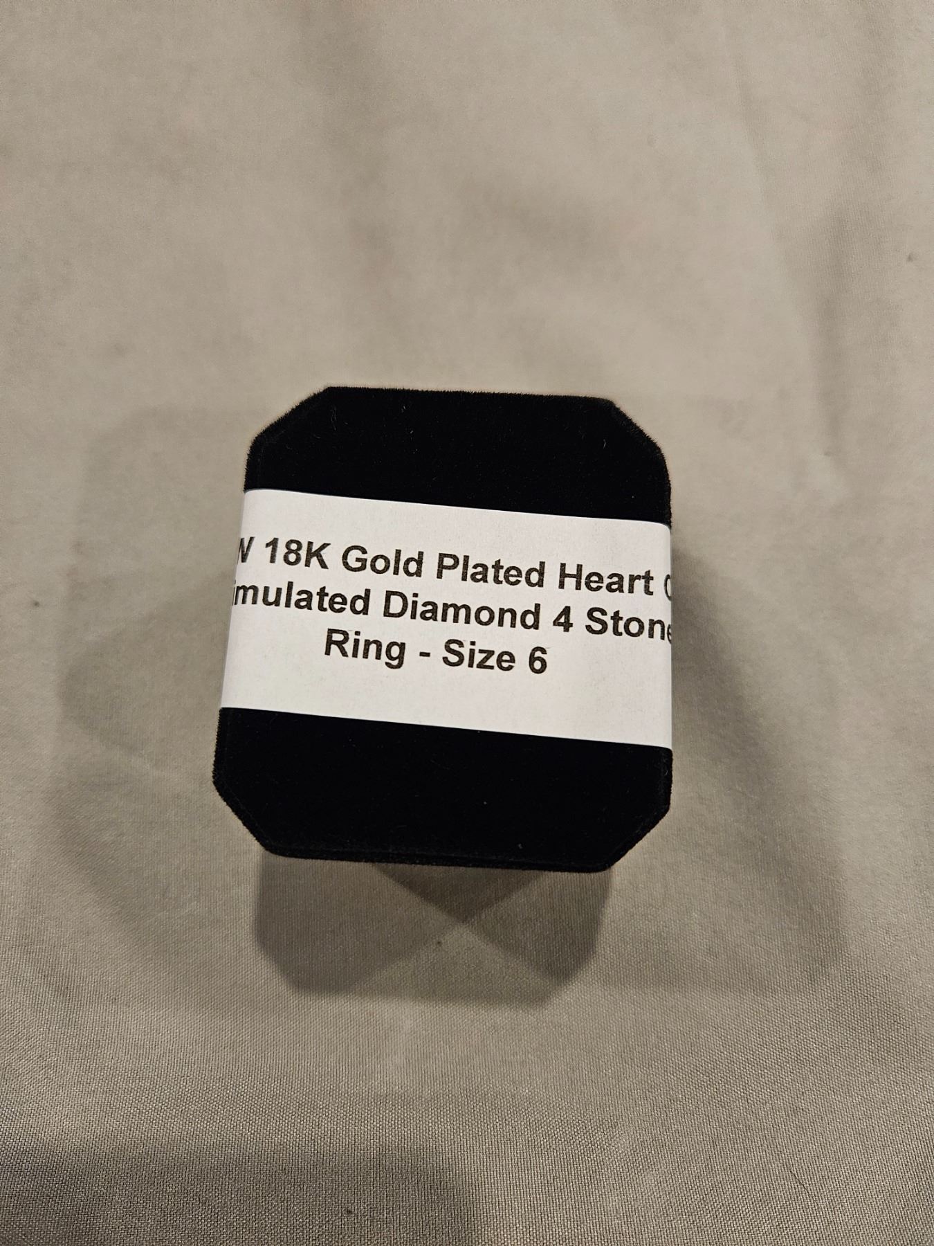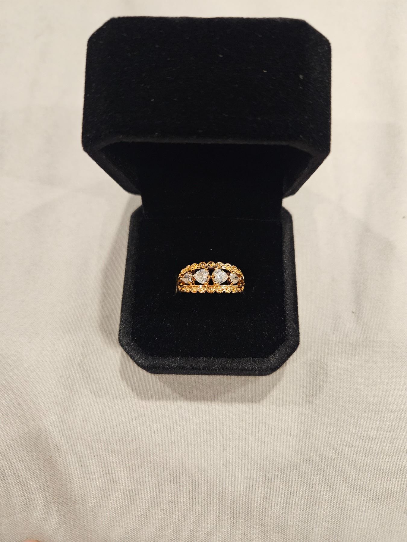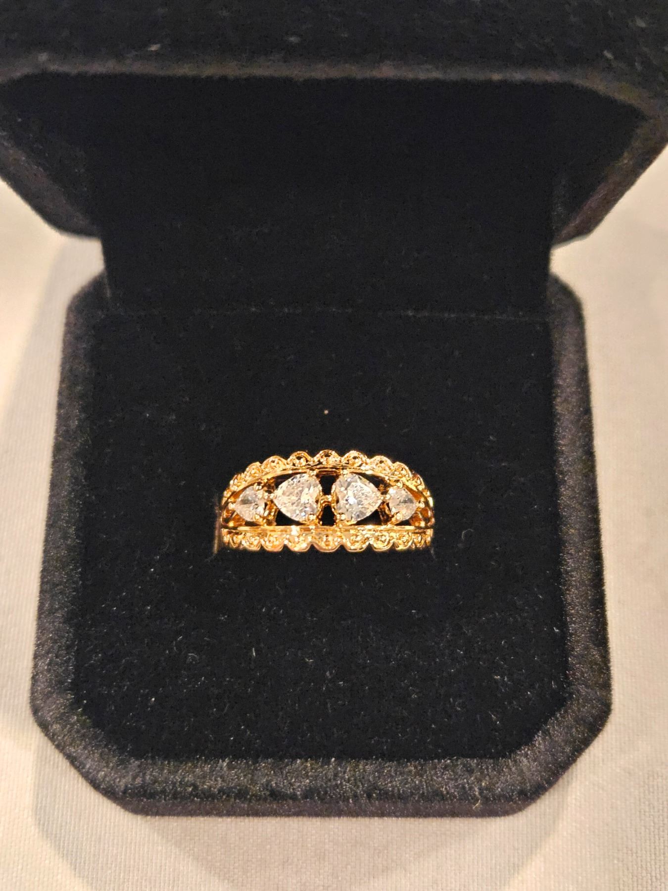 18K Gold plated heart cut Simulated Diamond 4 stone ring- Size 6