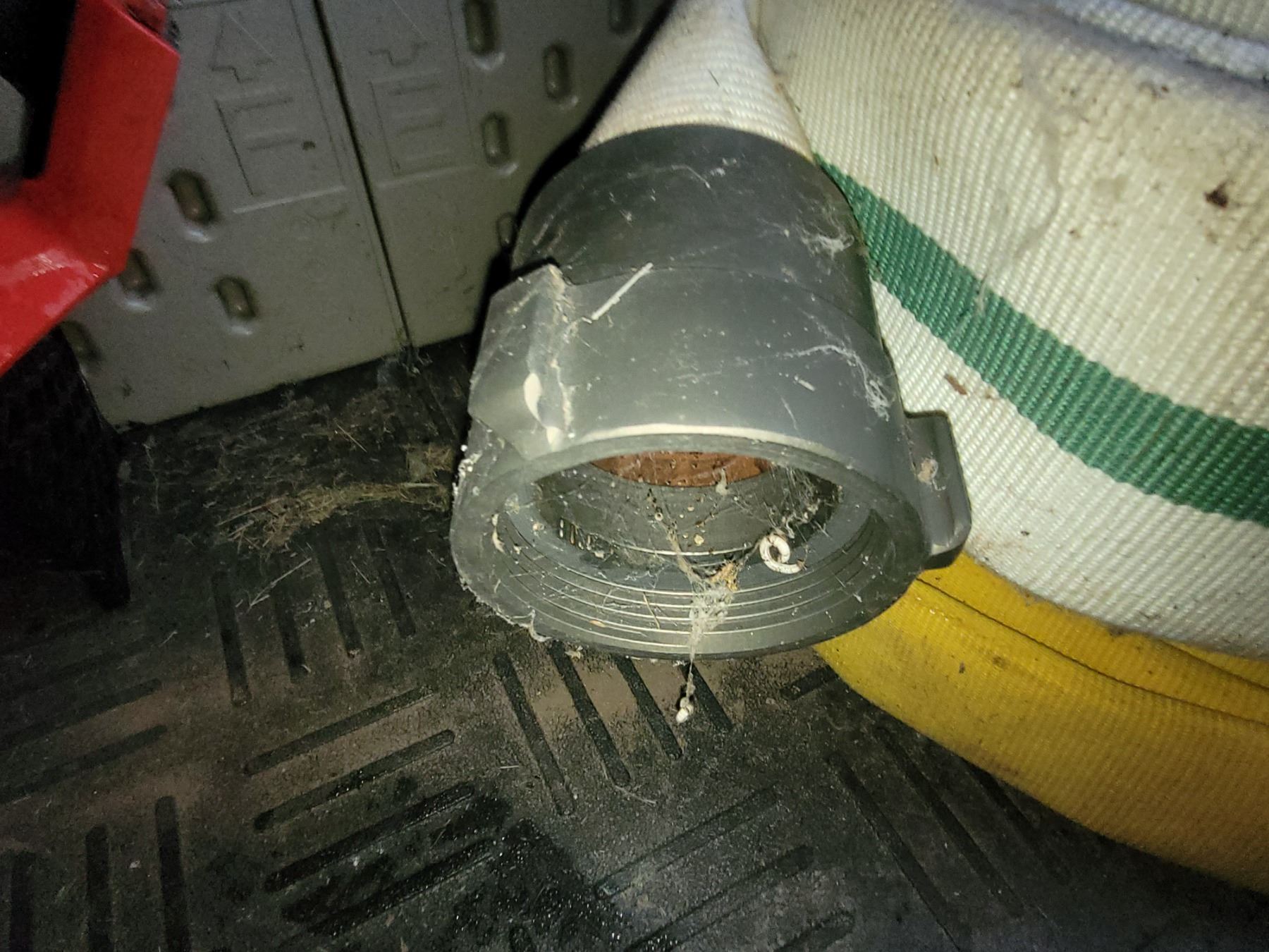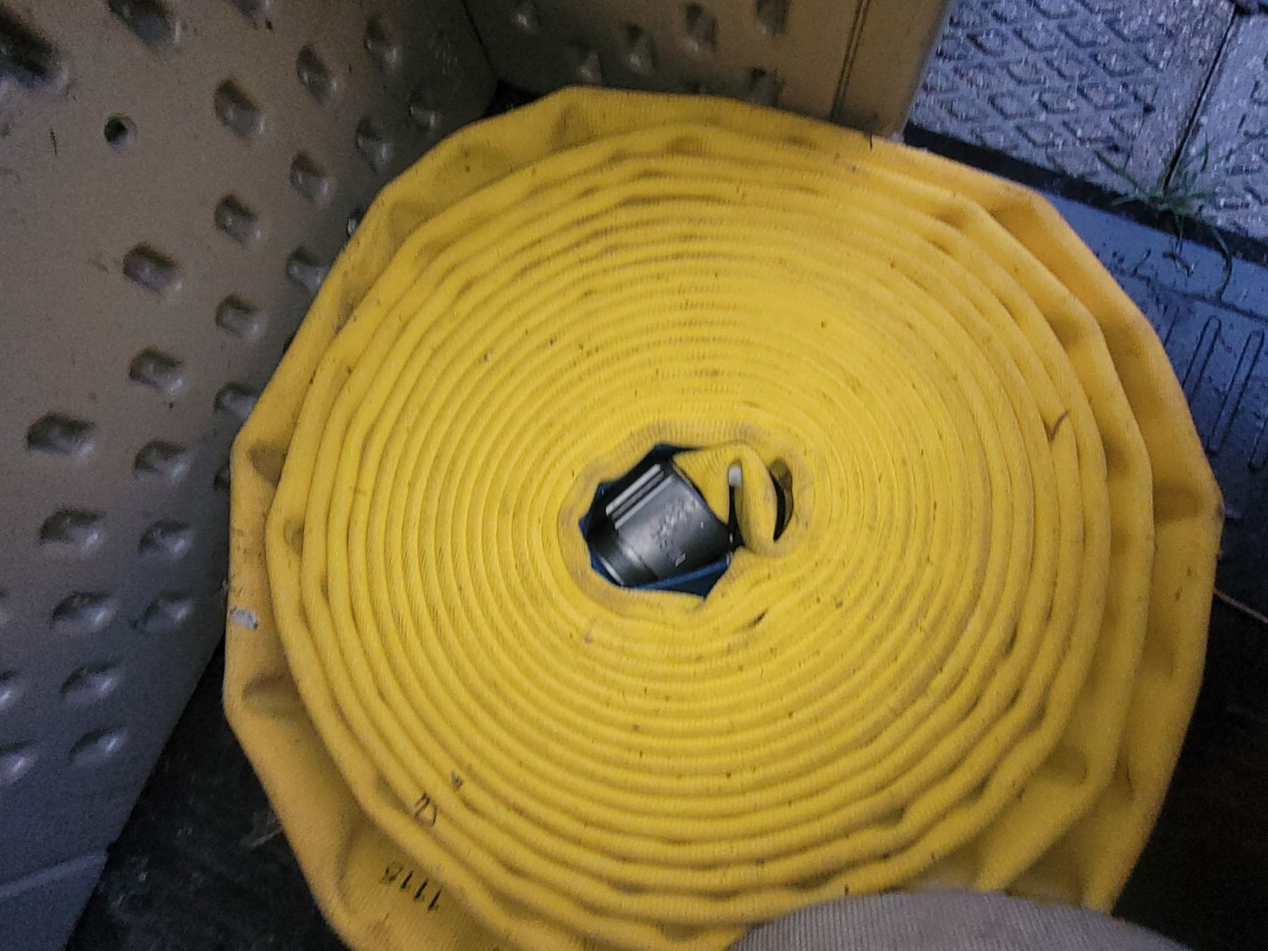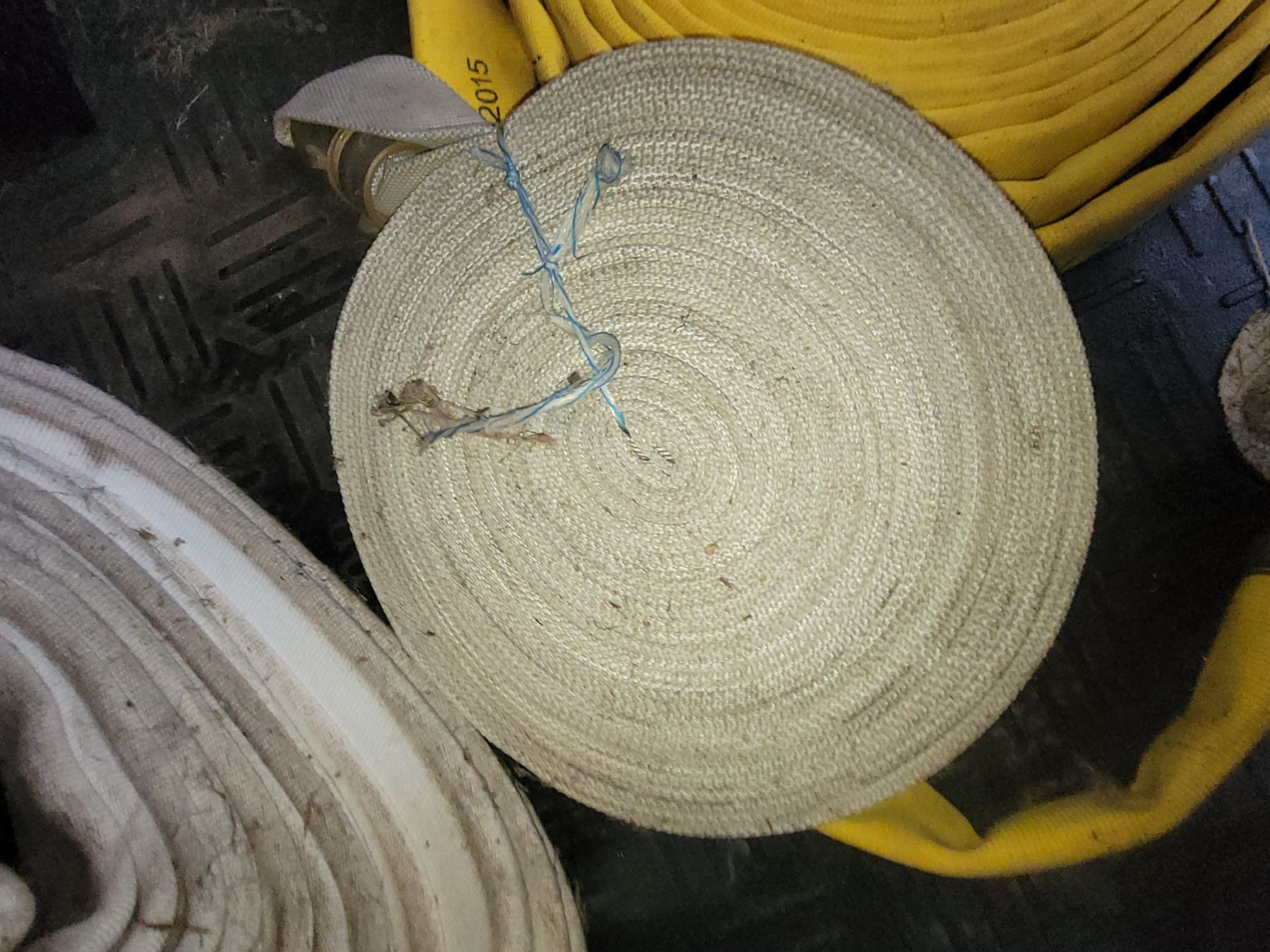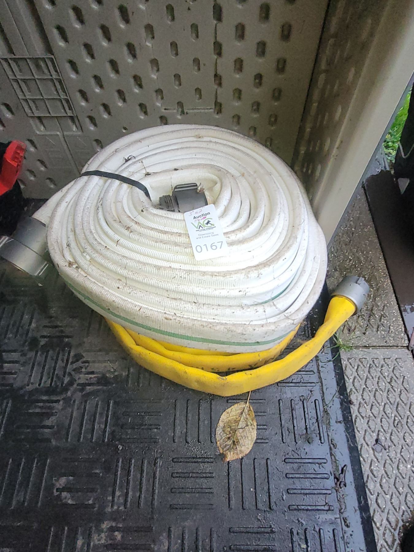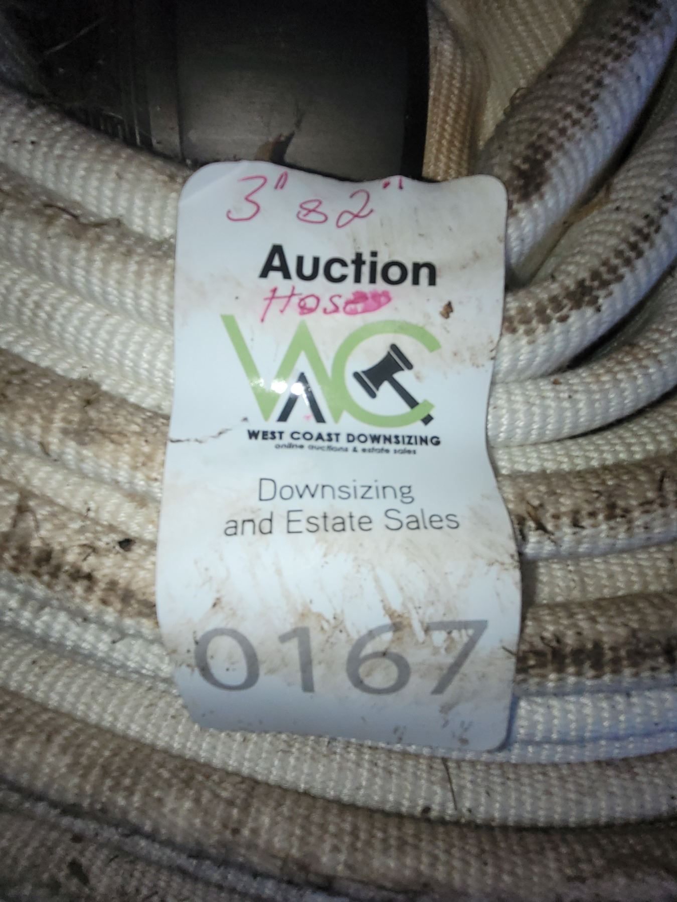 3 Heavy duty fireman type hoses, largest is 3". Pickup at 10 am