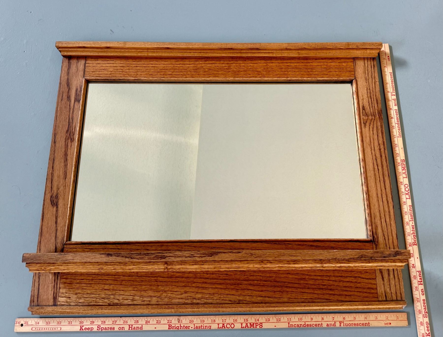 Heavy Oak Mirror with Shelf. Measures: 45” wide x 36” tall