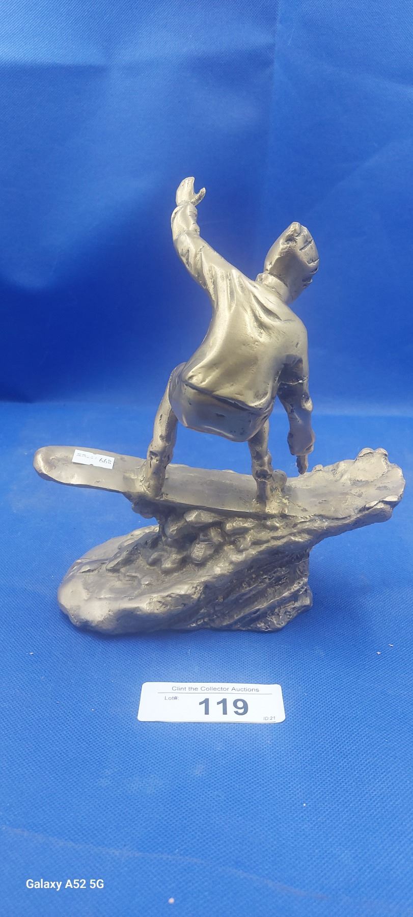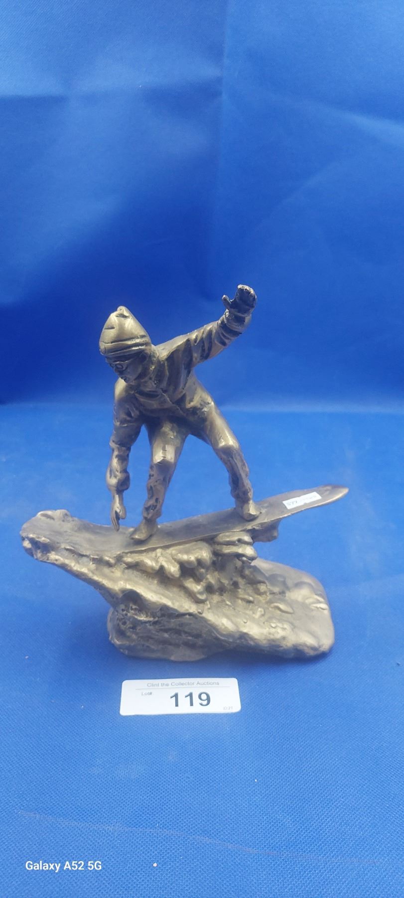 Heavy brass snow boarding statue 9"