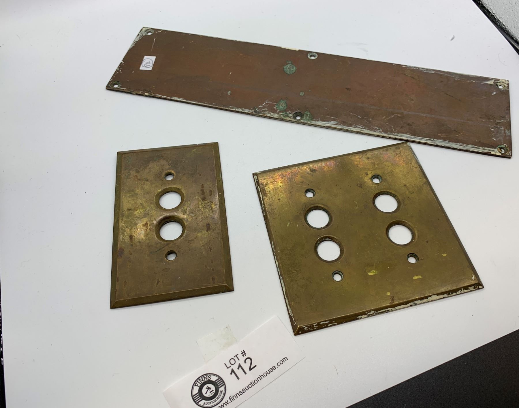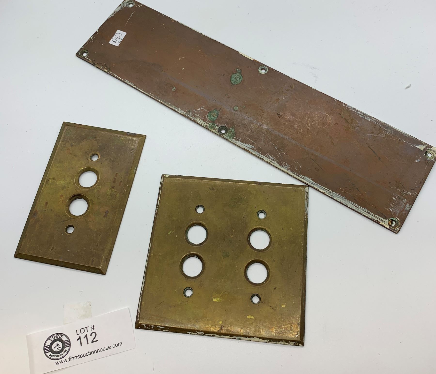 Heavy copper doorpush plate plus two vintage lightswitch covers