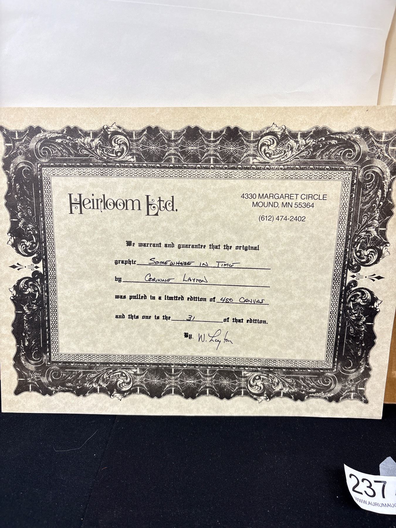 Heirloom Ltd. SOMEWHERE IN TIME By Corinne Layton w/ COA Print on Canvas 32" x 27.5"