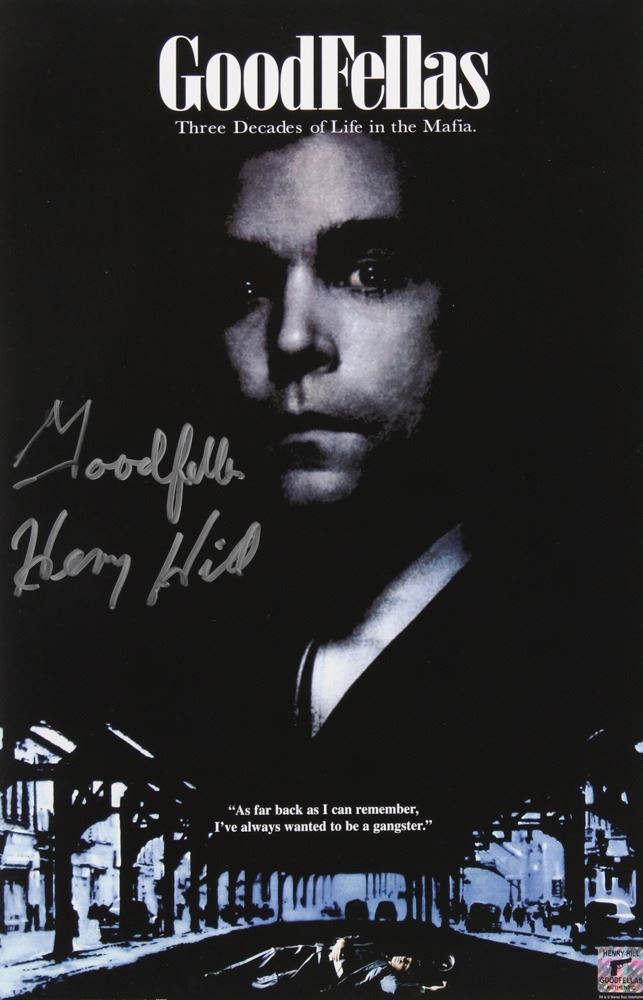 Poster measures 11" x 17" in size and has been hand-signed and inscribed in silver paint pen by Henry Hill (D 2012, Mobster). The autograph includes an official Henry Hill hologram for authenticity purposes. Authentication: Henry Hill Hologram.