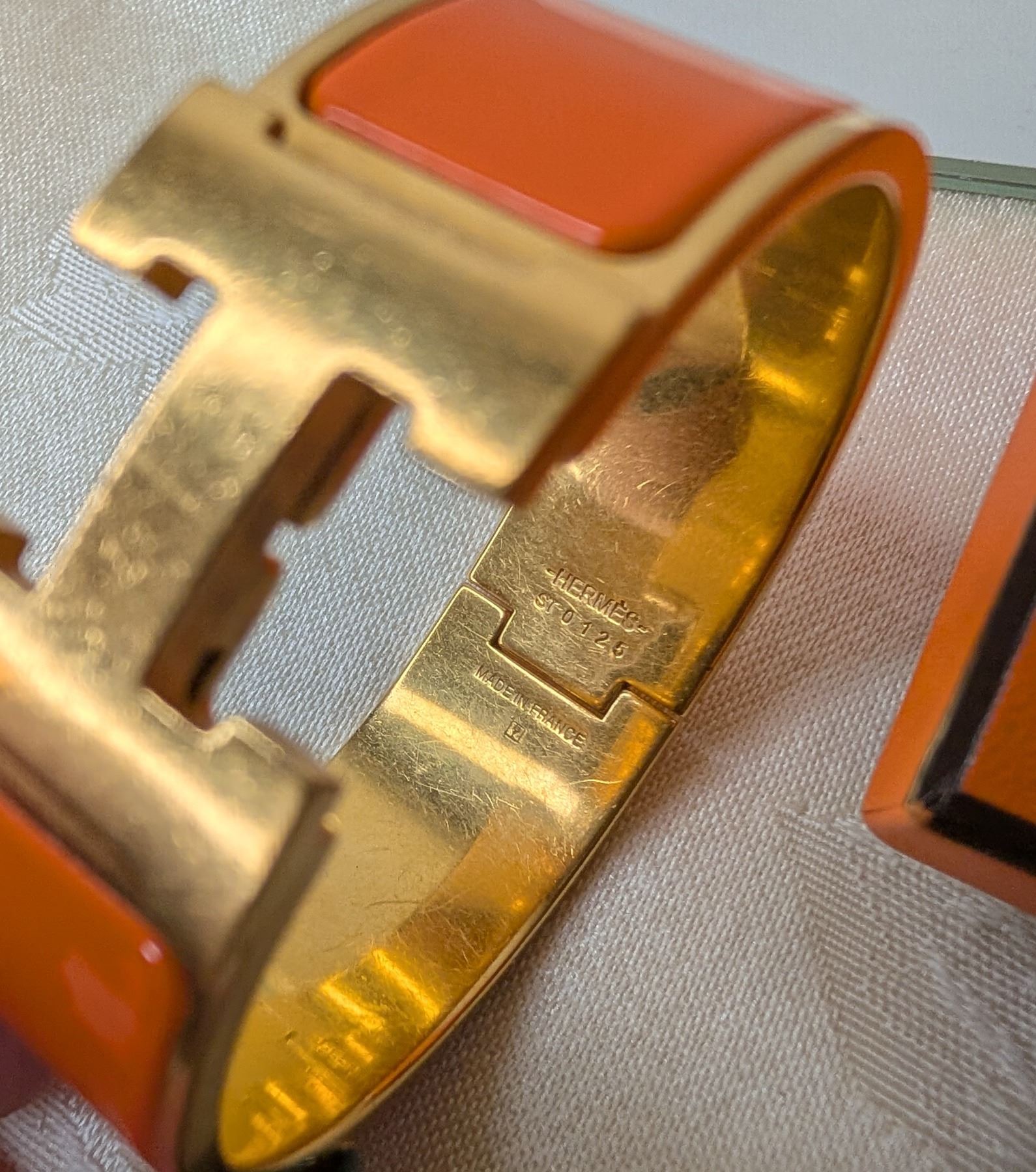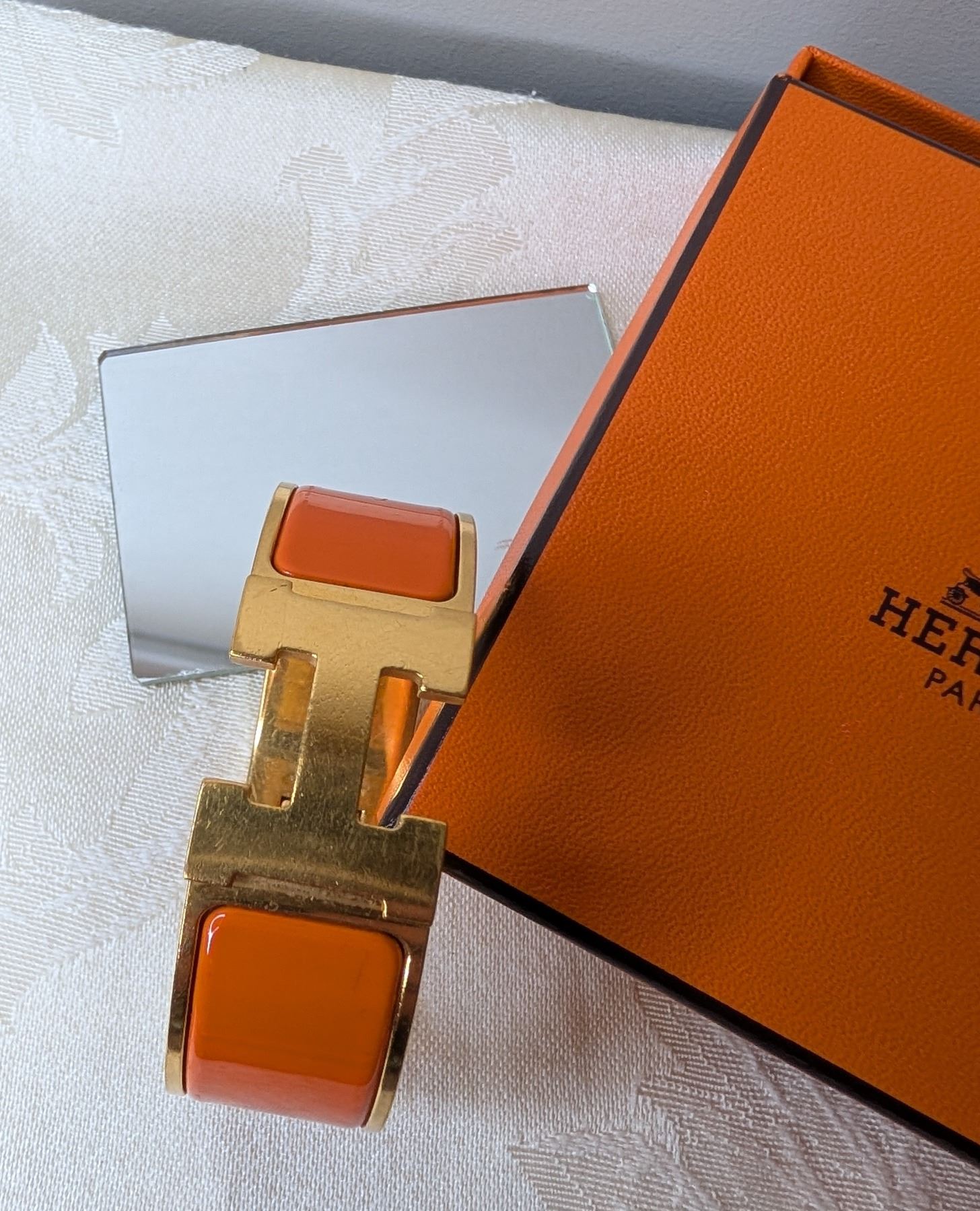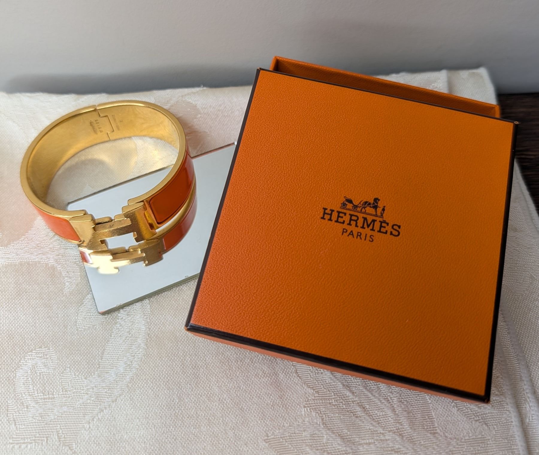 Hermès Gold Orange Enamel Wide Clic Clac H Bracelet with box