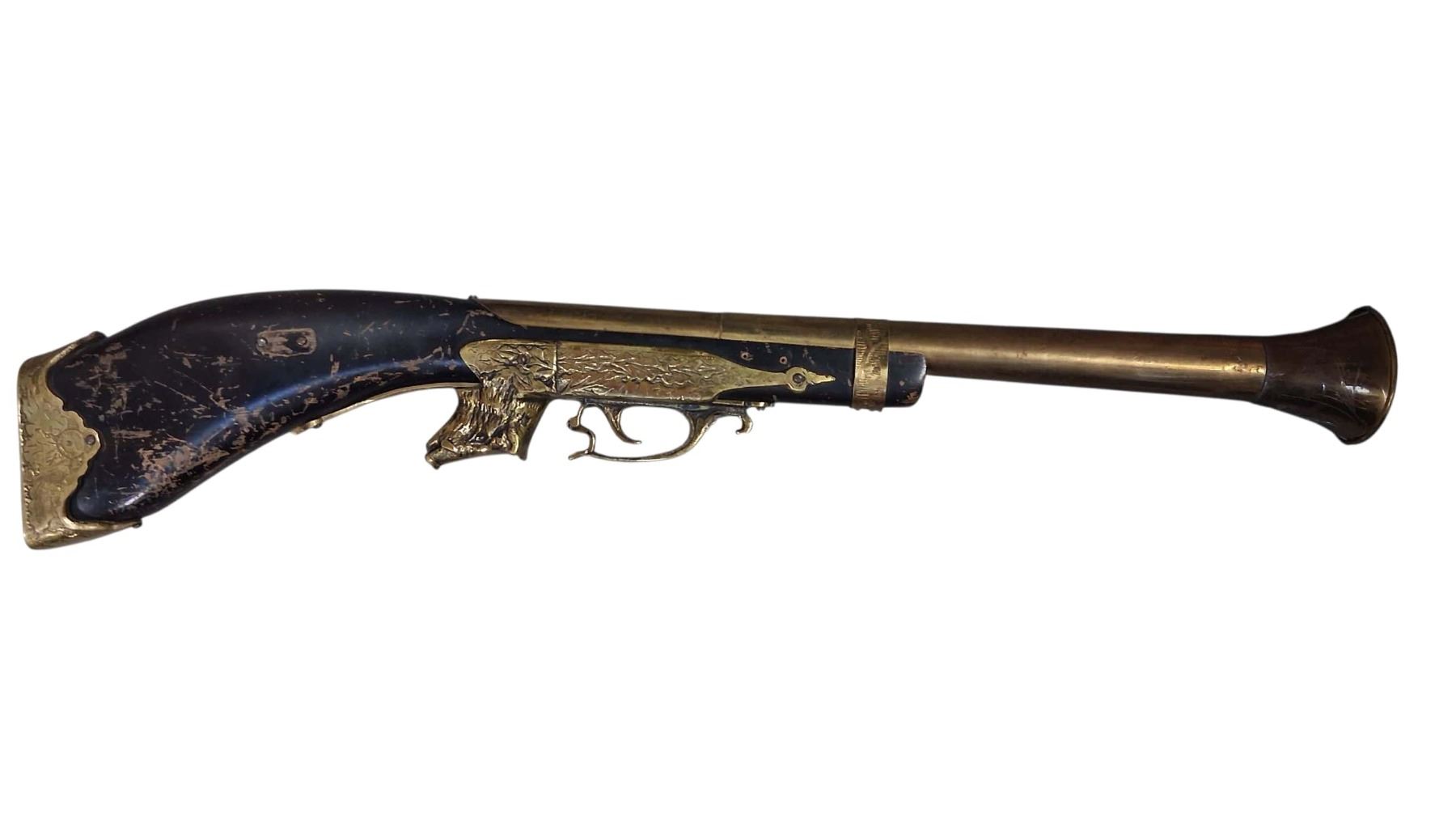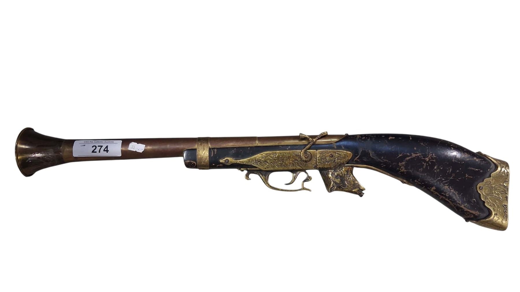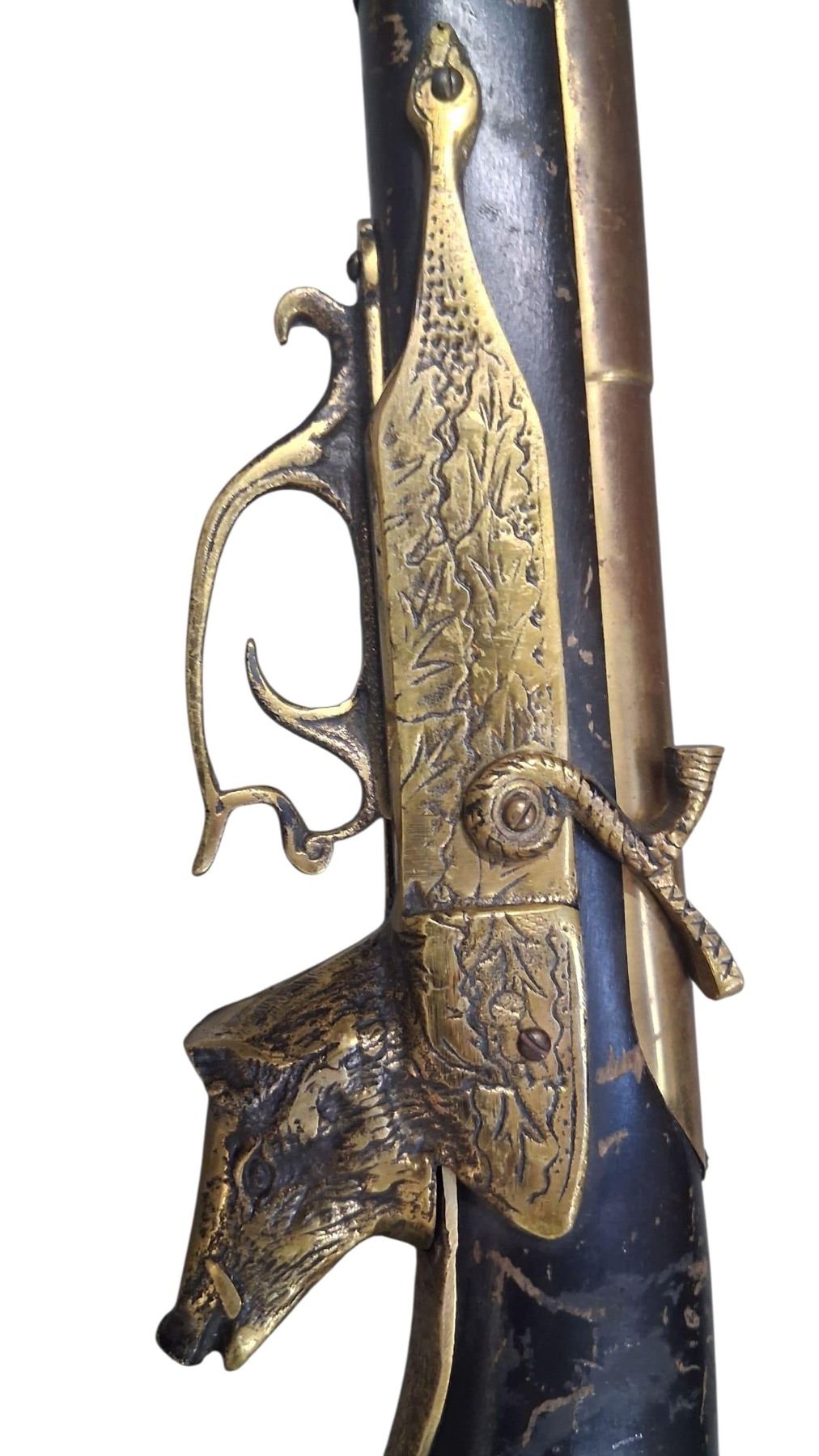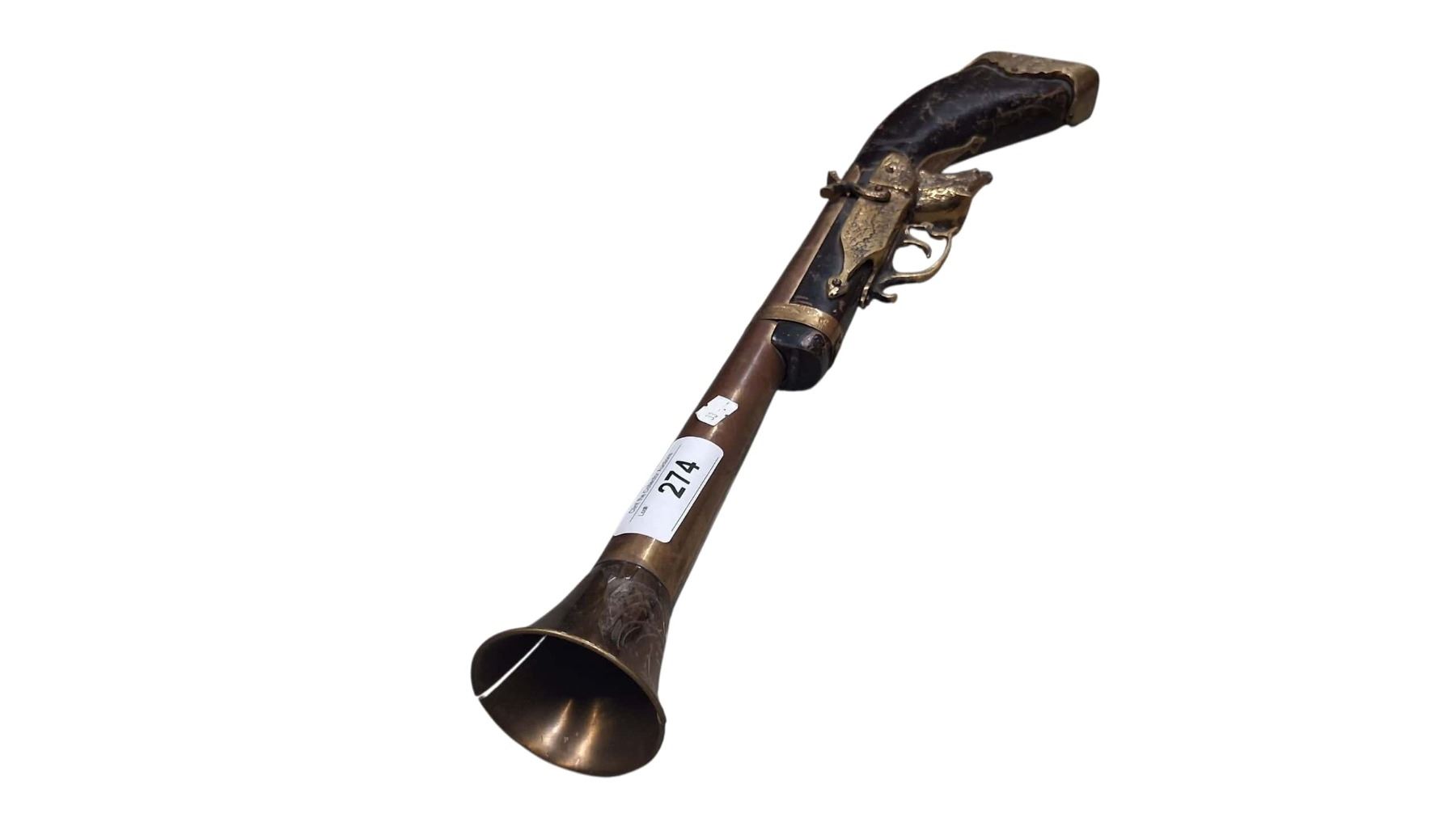 Highly detailed replica blunderbuss with brass hogs head 27" long, fantastic wall hanger
