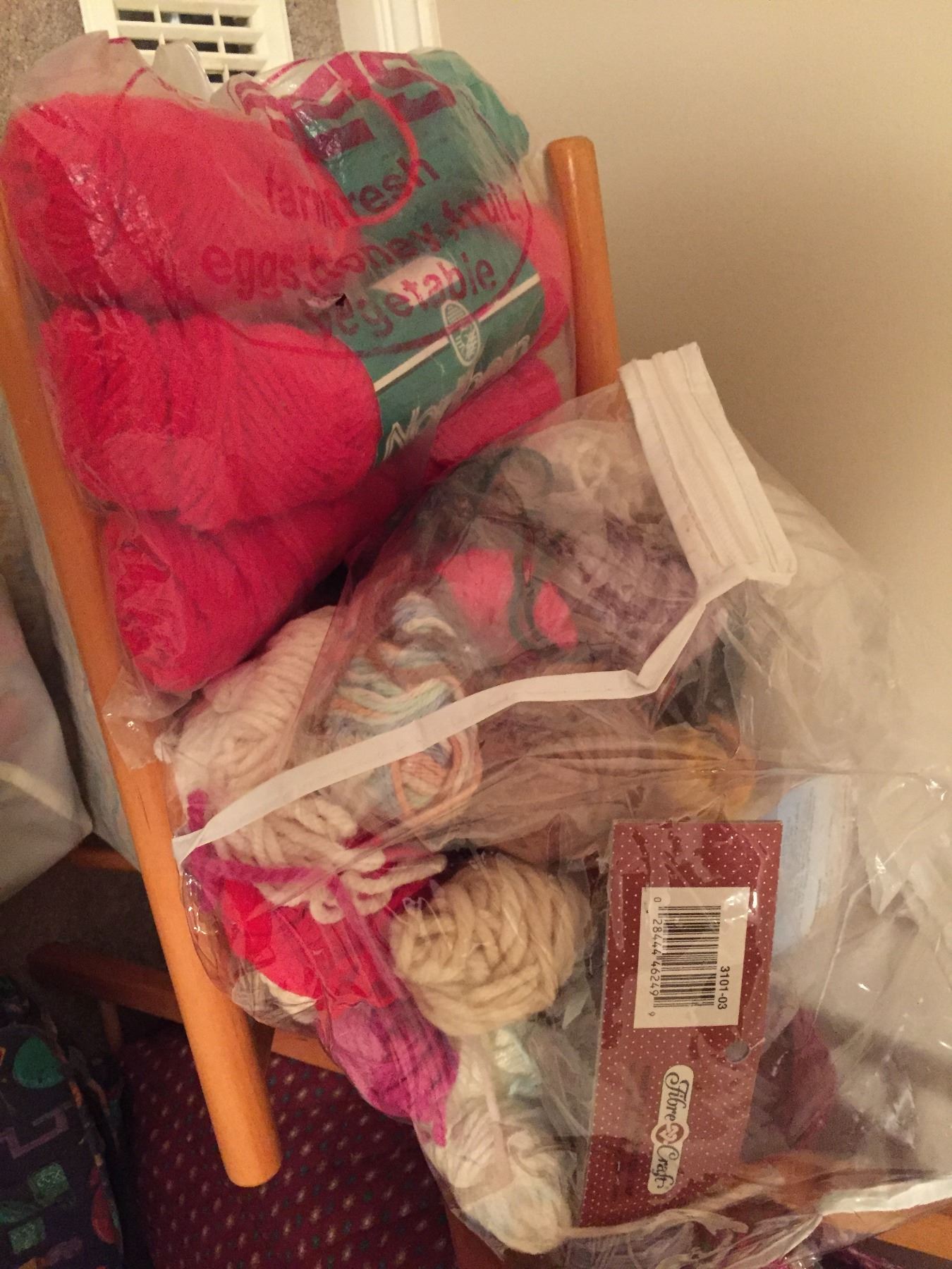 Lot includes knitting wool, batten, twine, notions and more. Bring packing supplies. Come to pickup at Category A time slot, (9:00 am - 10:00 am)