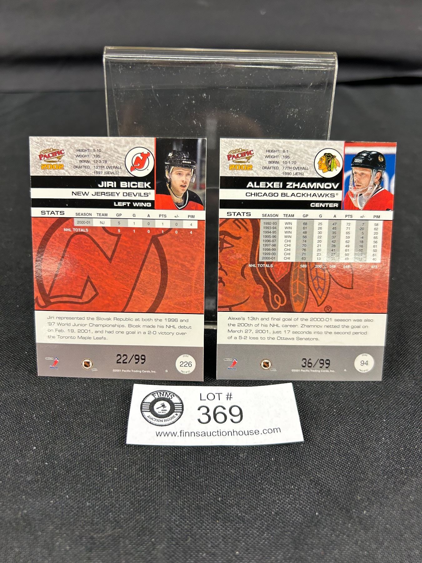 Hobby Ltd Ed. /99 2001 Pacific, Alexei Zhamnov 36/ & Jiri Bicek 22/ NHL Cards # 94 & 226