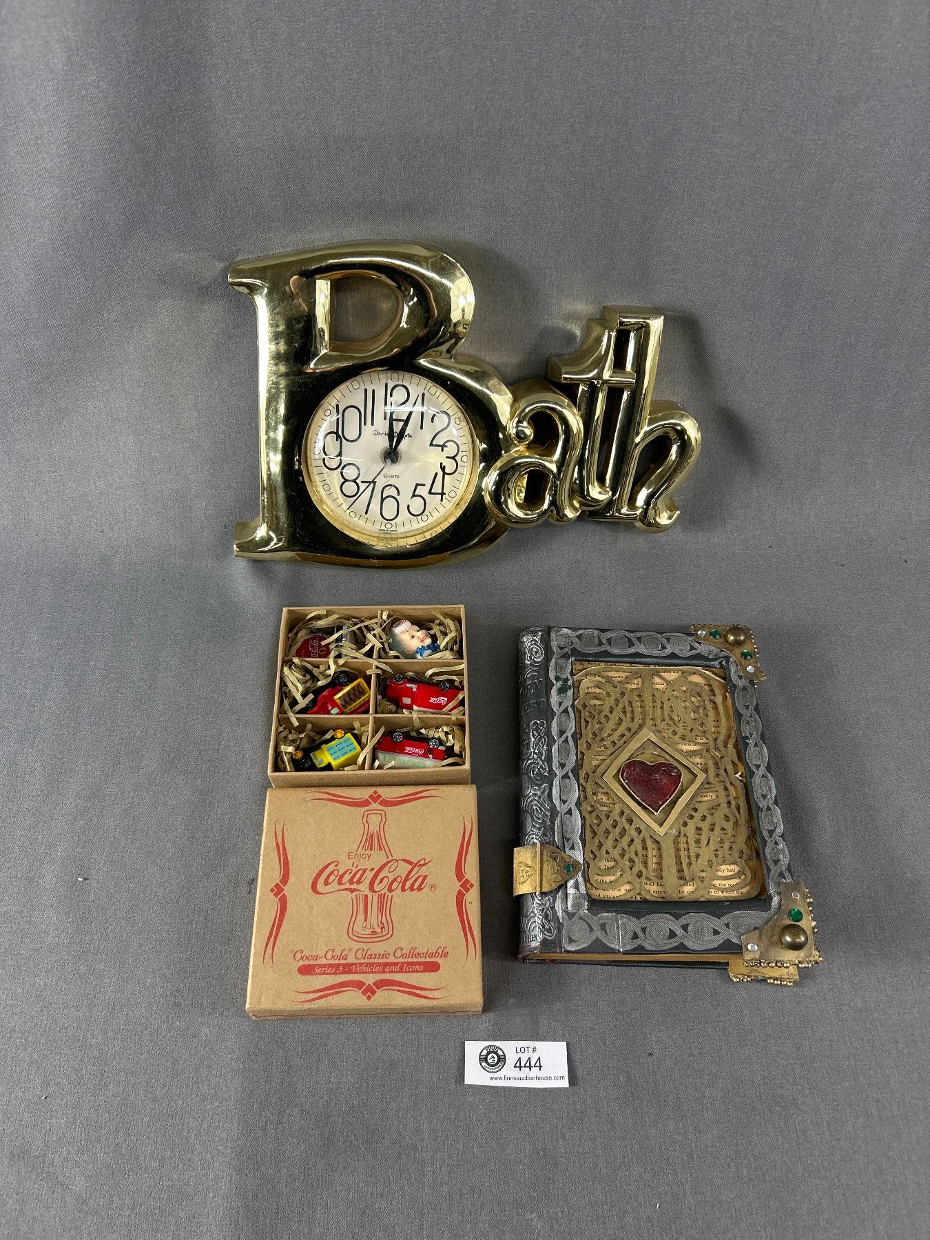 Home Décor Lot - Bath Clock, Decorative Book & Coca-Cola Series 3 -Vehicles & Icons Classic Collectables