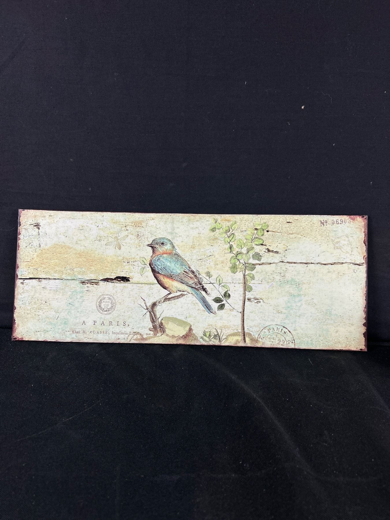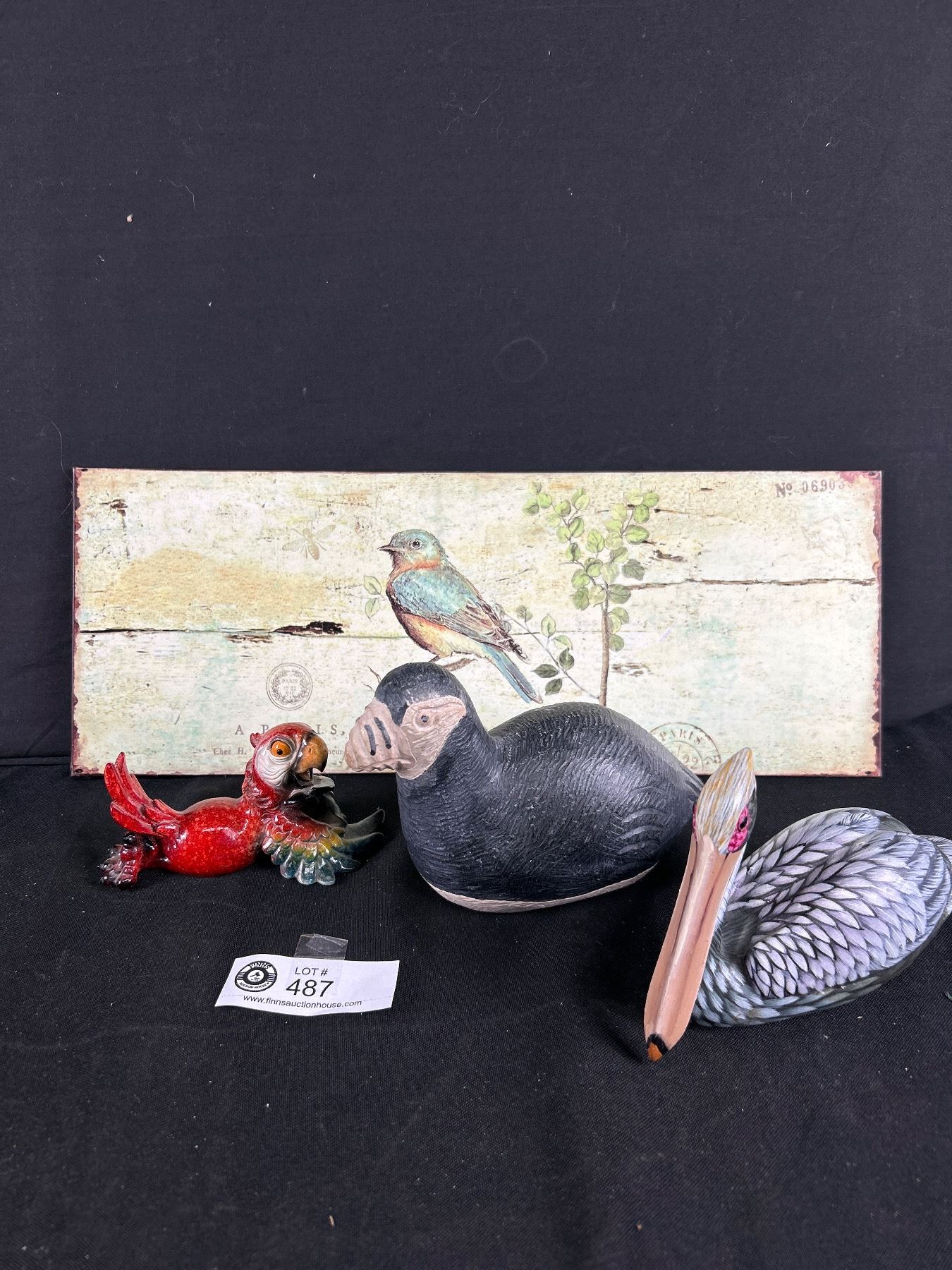 Home Décor Lot - Tin Sign, Wood Pelican, Kenya Stone Pelican & Whimsical Parrot