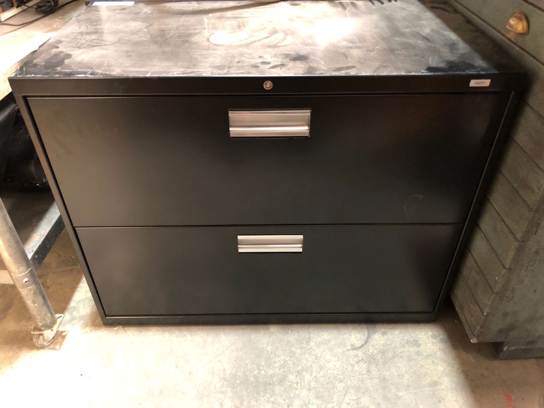 Hon black metal 2 drawer lateral filing cabinet w/key