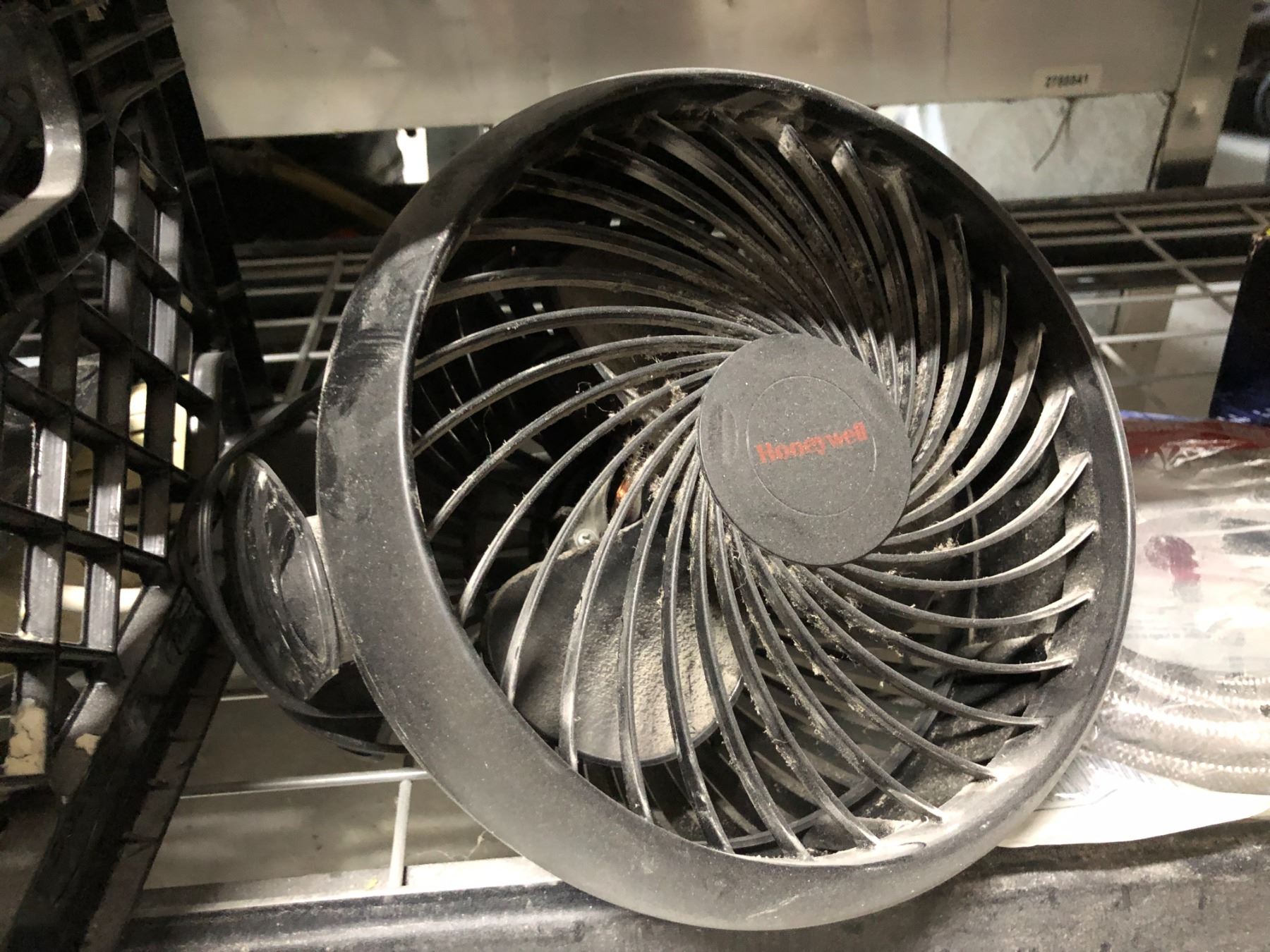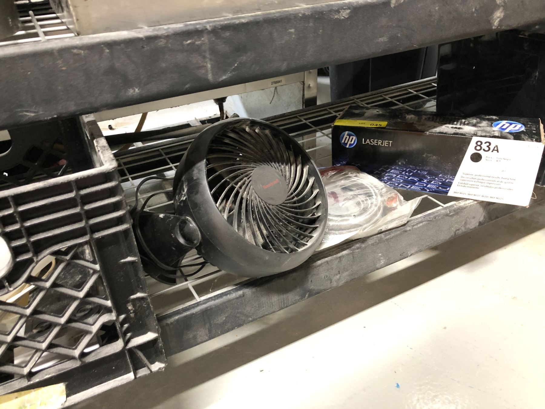 Honeywell fan/Laserjet HP black printer cartridge & assorted misc items