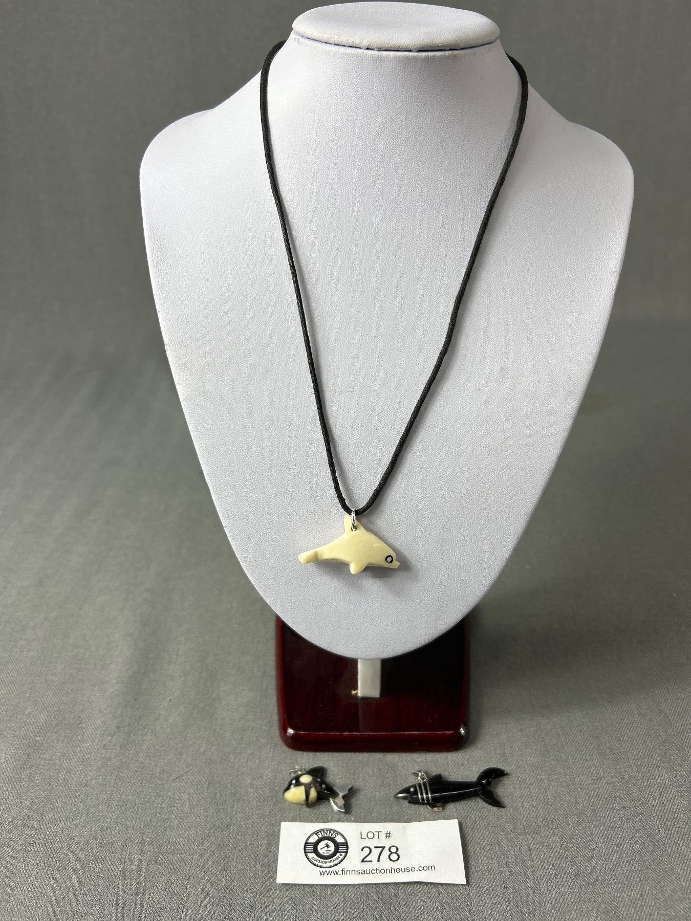 Horn Shark, Bone Orca & Bone/Ivory Dolphin Pendants, One w/String